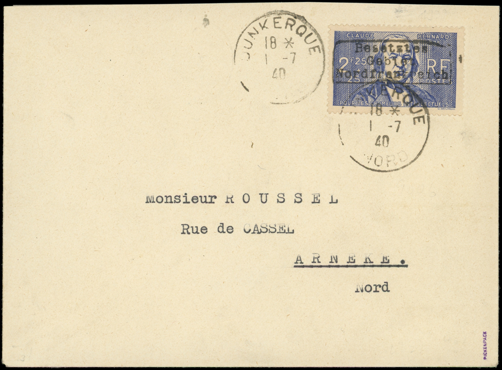 DUNKERQUE 1/7/40 s. Env., arr. ARNEKE 3/7, TB, certif. Pickenpack (Image)
