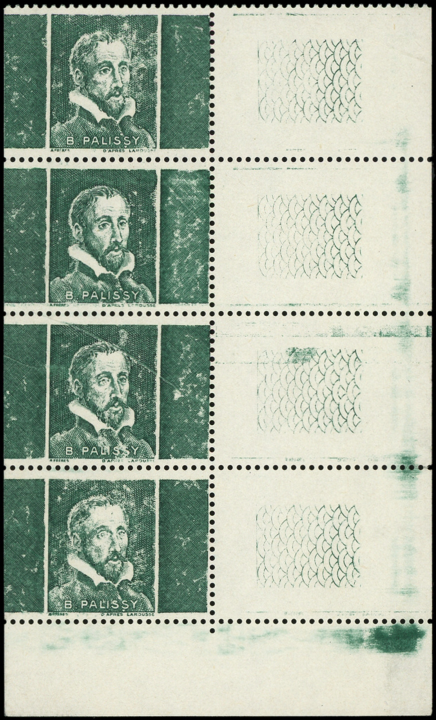 foncé, gomme mate, impression DEFECTUEUSE, BANDE de 4 cdf, TB (Image)
