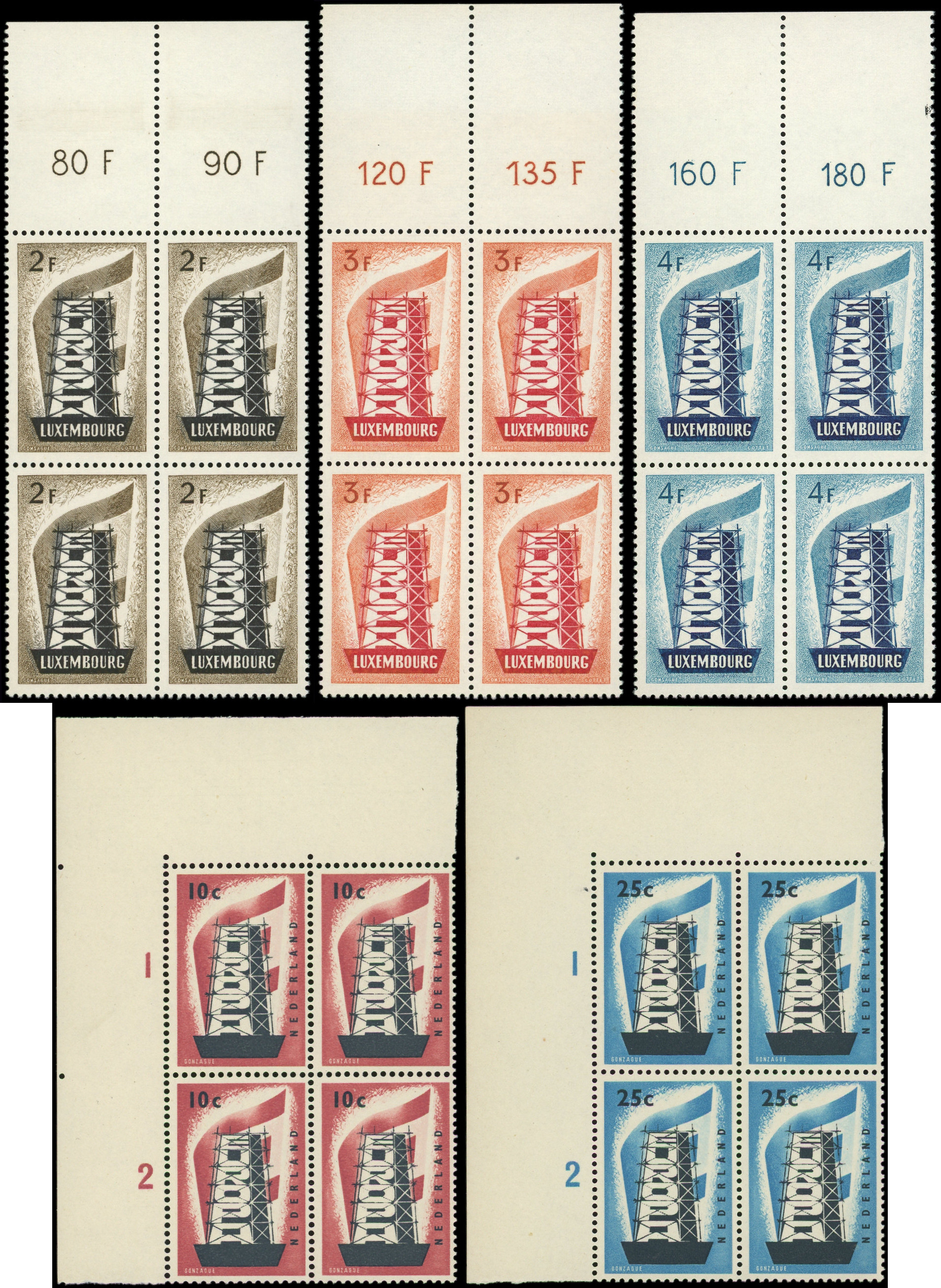 en BLOCS de 4 bdf ou cdf, Pays-Bas adh. sur 1 ex., TB (Image) (Image2)