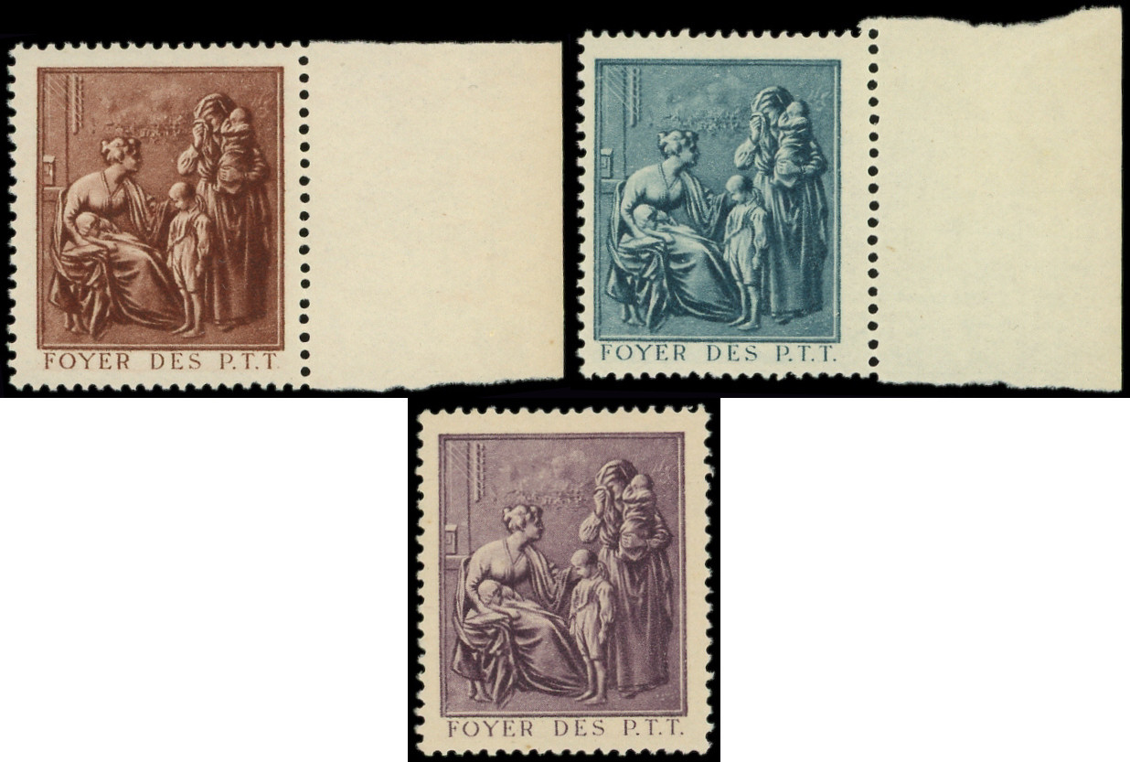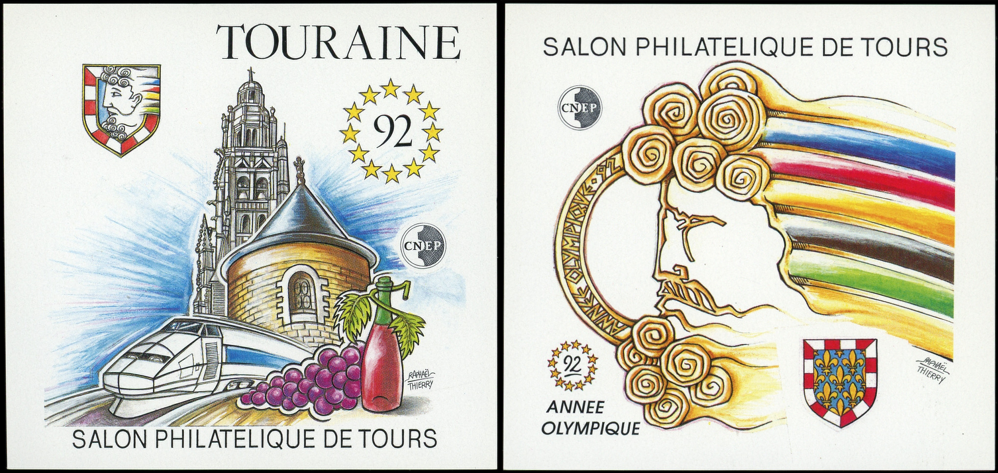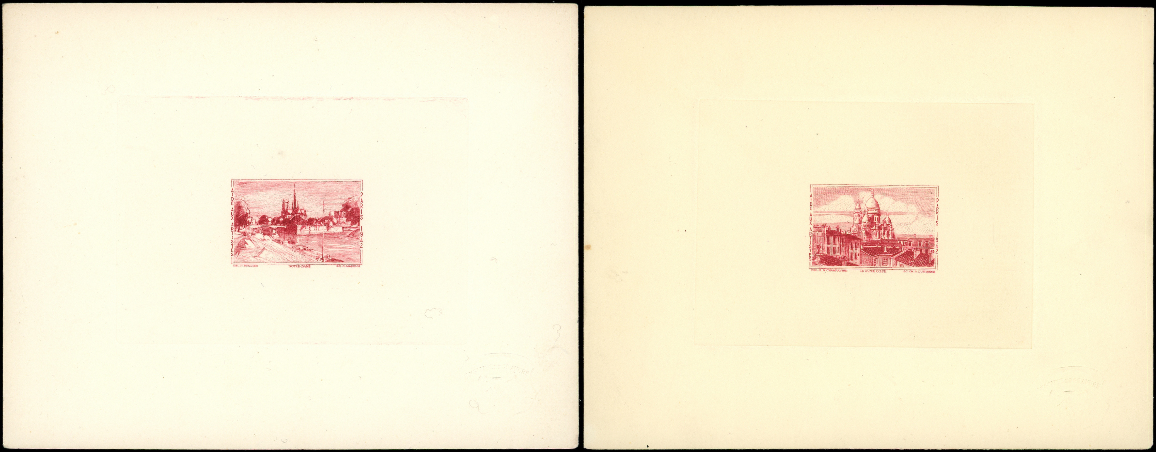 1942, 2 épreuves en carmin de l'Institut de Gravure, Notre-Dame et le Sacré Coeur, TB (Image)