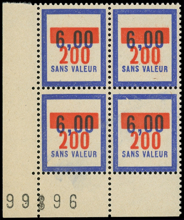 6,00 outremer, BLOC de 4 cdf numéroté, RR, TB (Image)