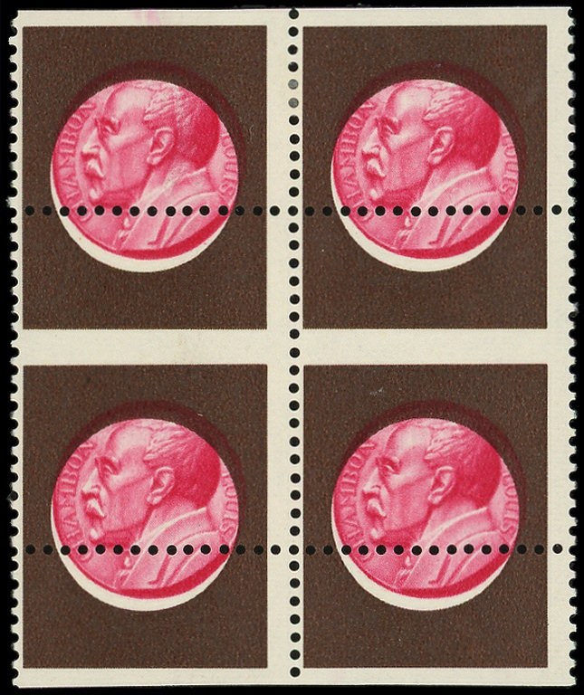 brun seul Non Dentelé, BLOC de 76 avec bords, 2 plis entre les vignettes, TB (Image)