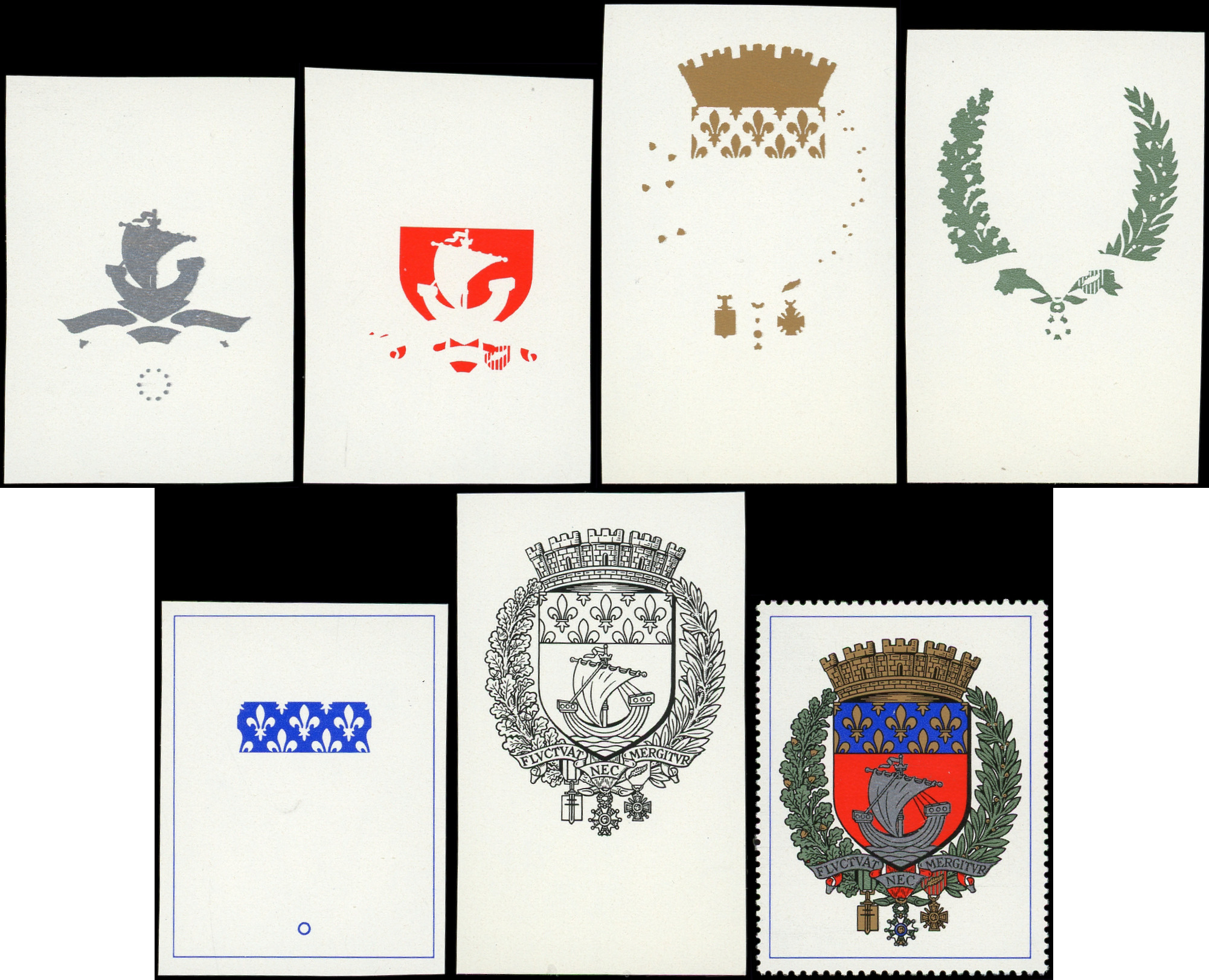Blason de Paris + la série des 6 couleurs imprimées individuellement, TB (Image)