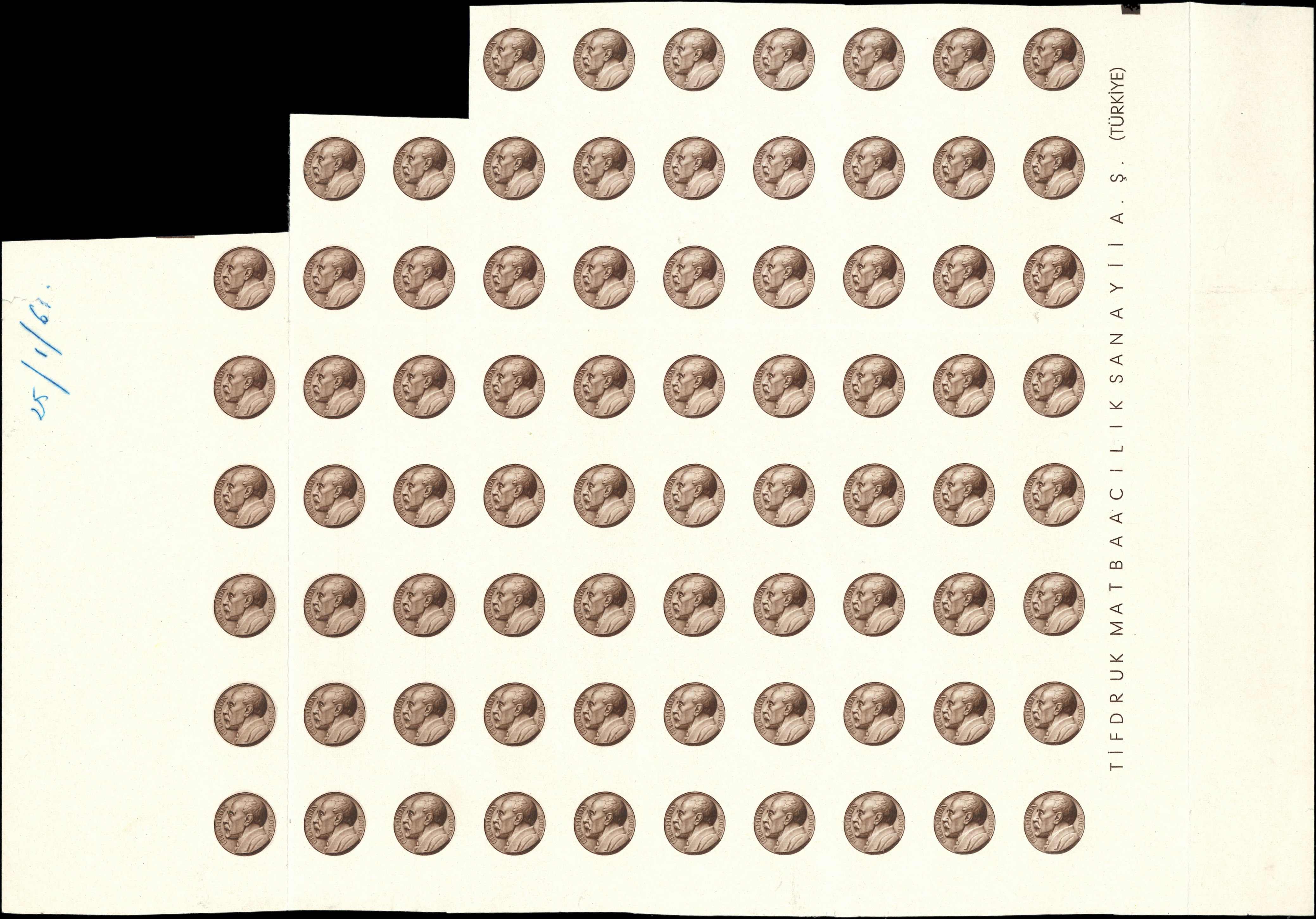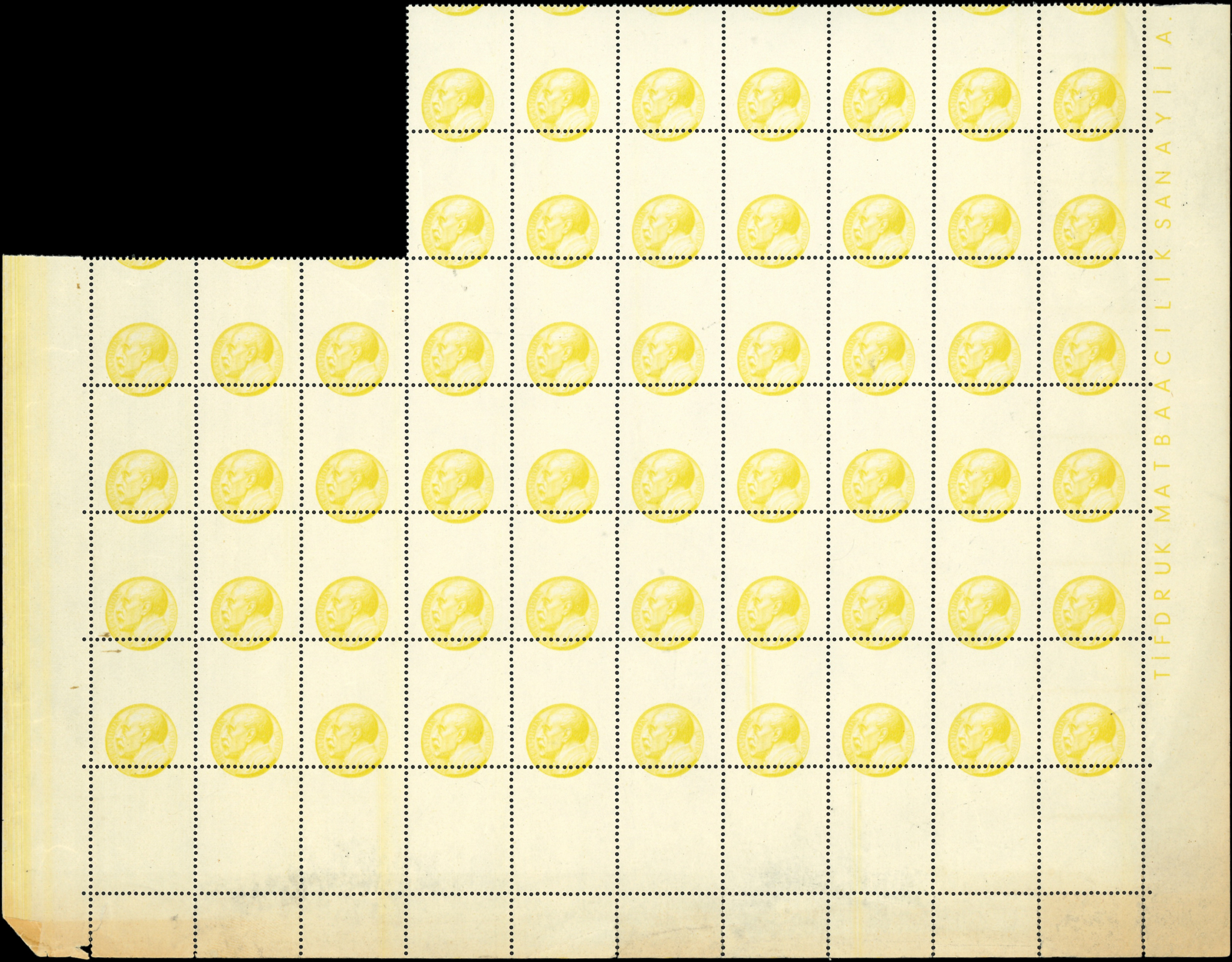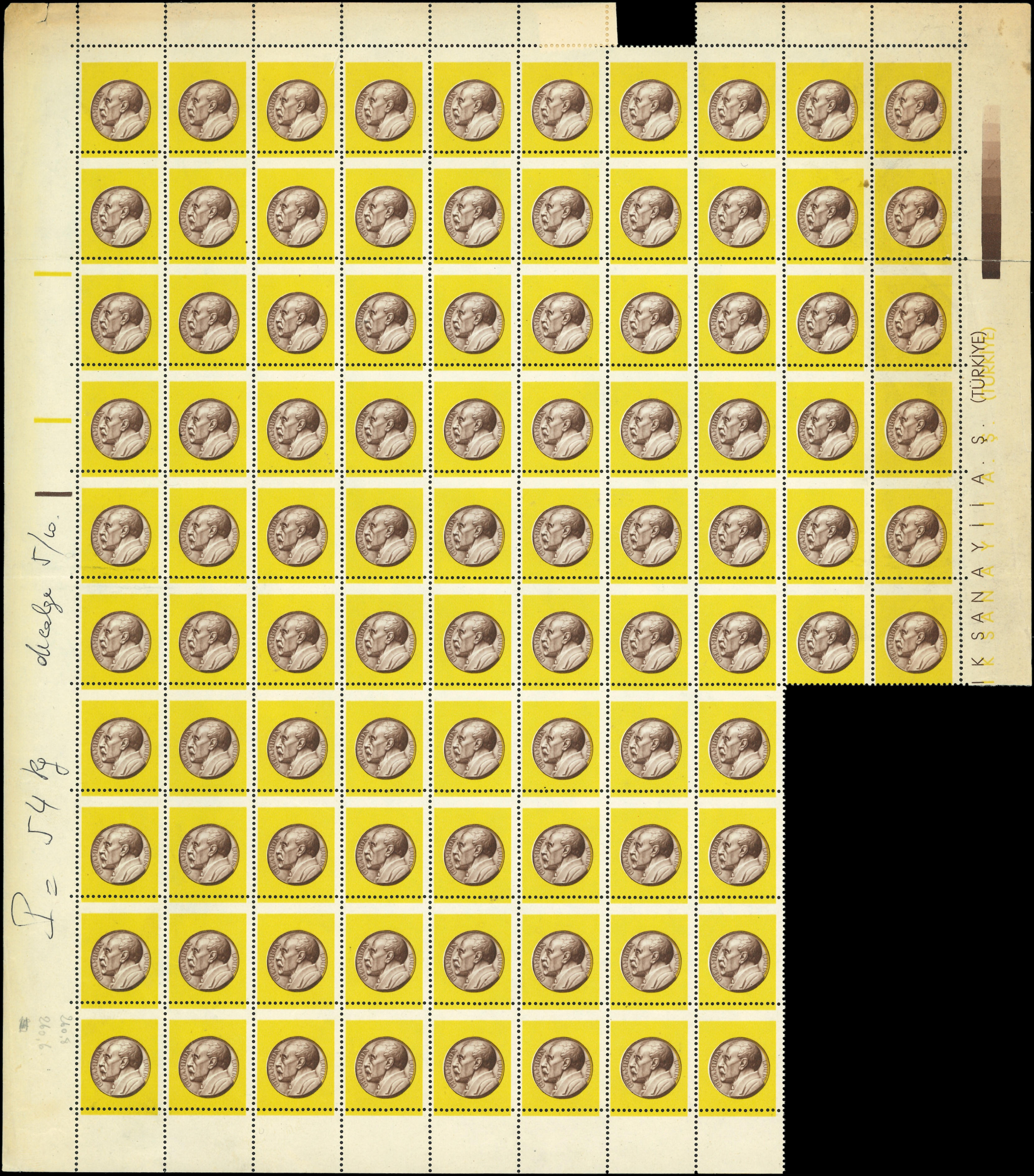 foncé seul, PIQUAGE à CHEVAL, BLOC de 50 avec bords, inscriptions en turc, TB (Image)