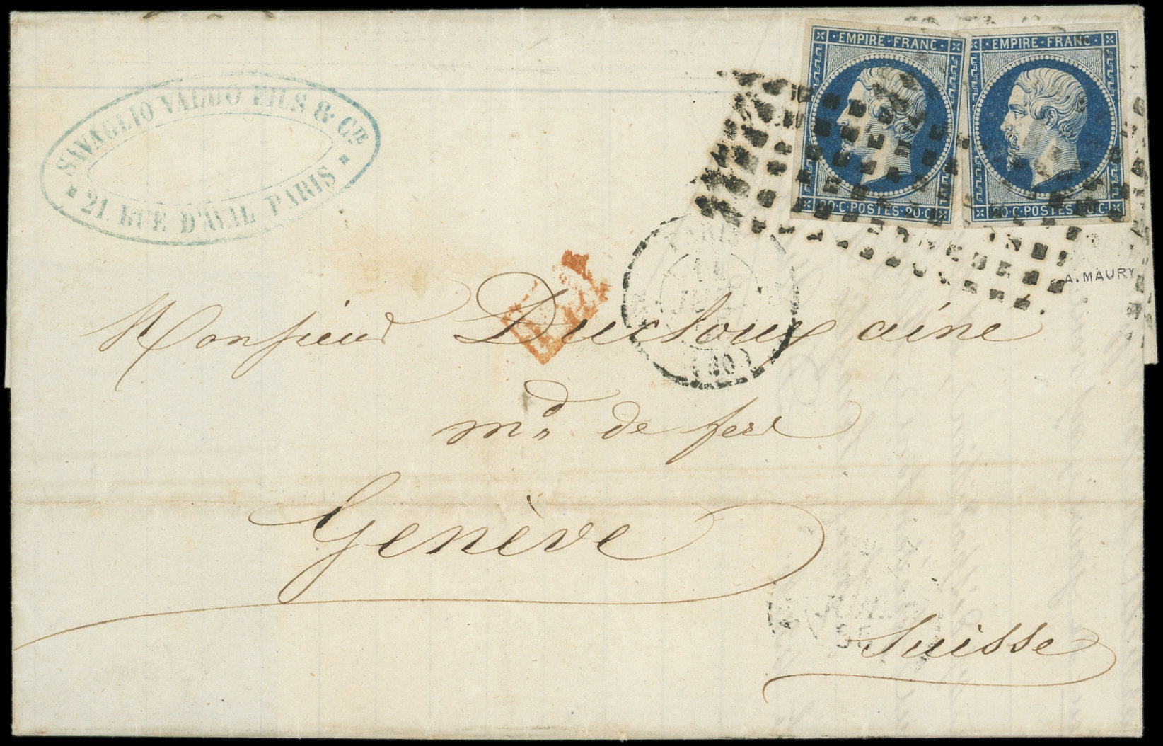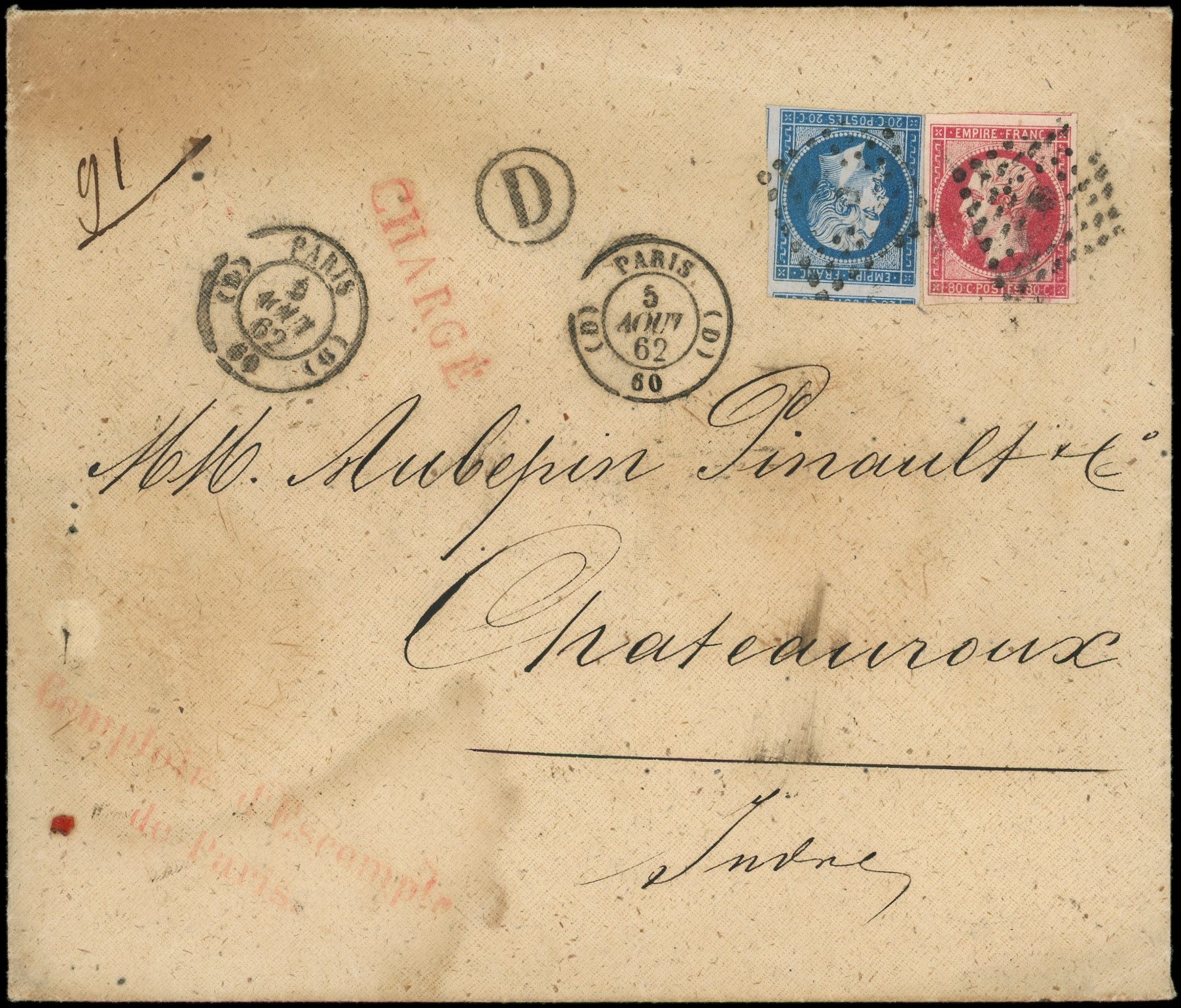 bleu et 80c. rose obl. Los. D s. Env. CHARGE, càd (D) PARIS (D) 5/8/62, TTB (Image)