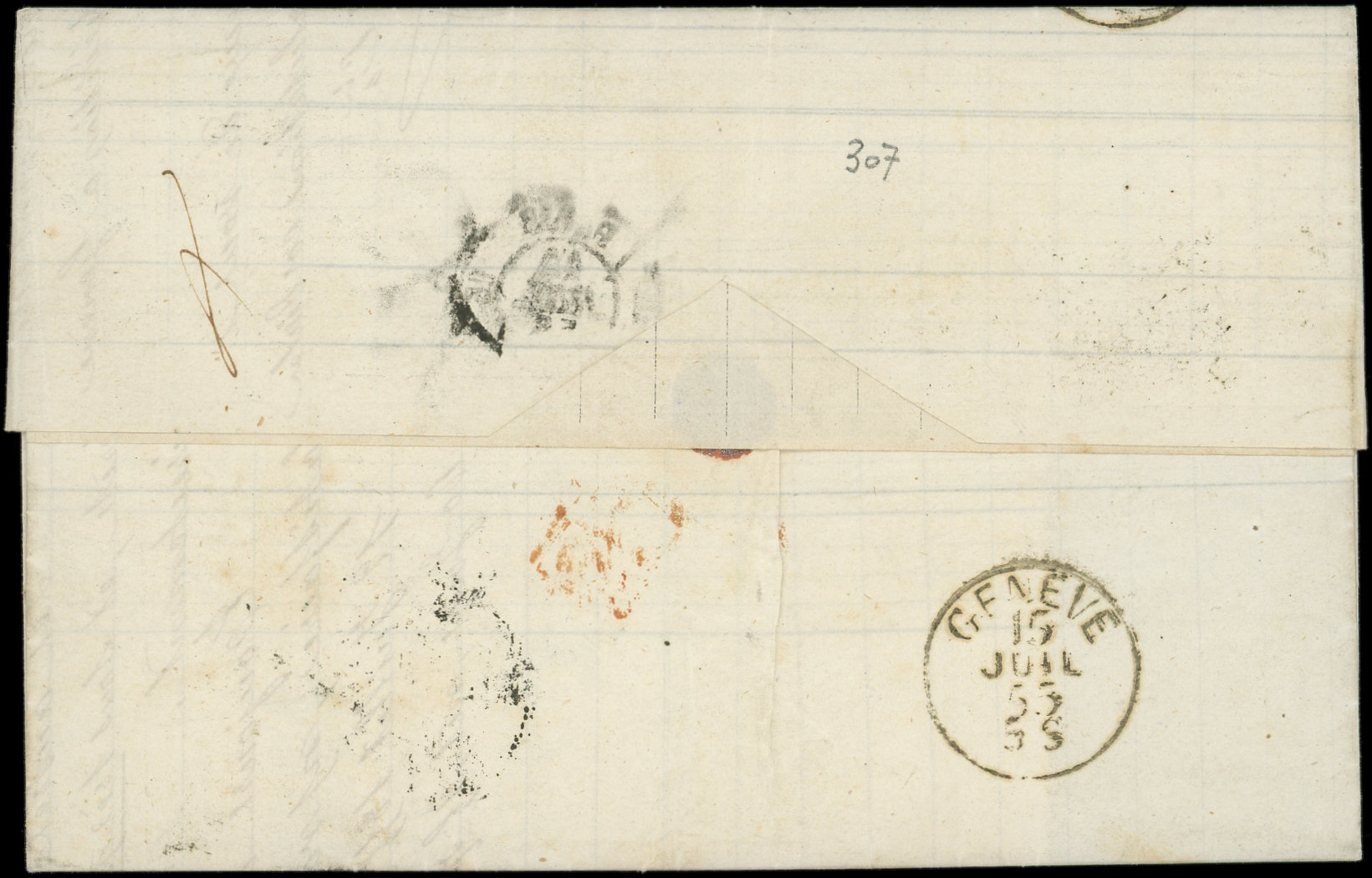 foncé, T I, 2 ex. obl. GROS POINTS s. LAC, càd Paris 14/7/55, arr. GENEVE 15/7, TB (Image)