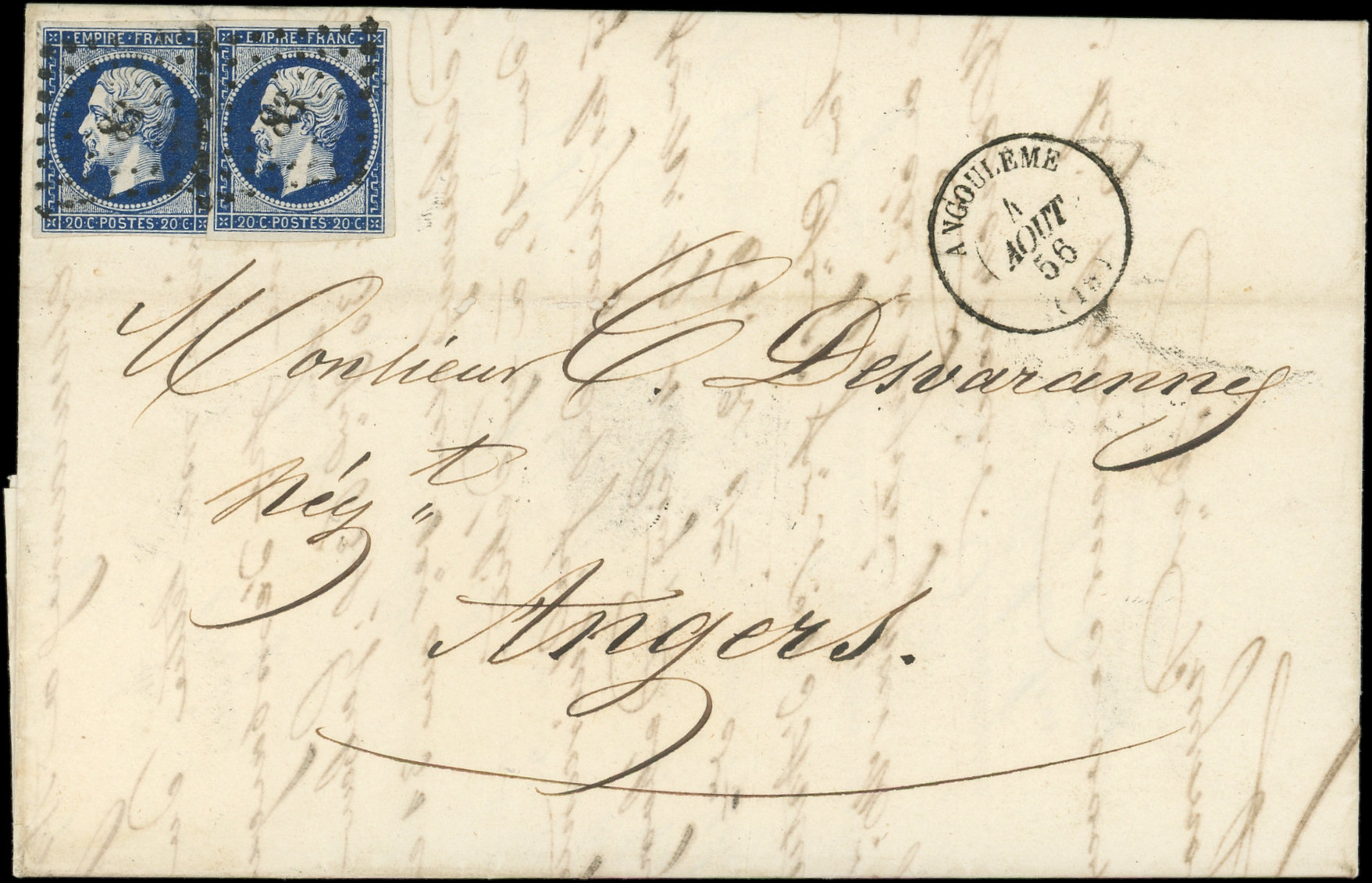 NOIR, T I, 2 ex. obl. PC 83 s. LAC, càd T15 ANGOULEME 4/8/56, arr. ANGERS 5/8, Superbe (Image)