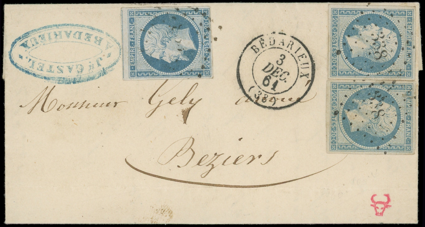 I, 3 ex. 2 nuances, obl. PC 338 s. LAC, càd T15 BEDARIEUX 3/12/61, TTB (Image)