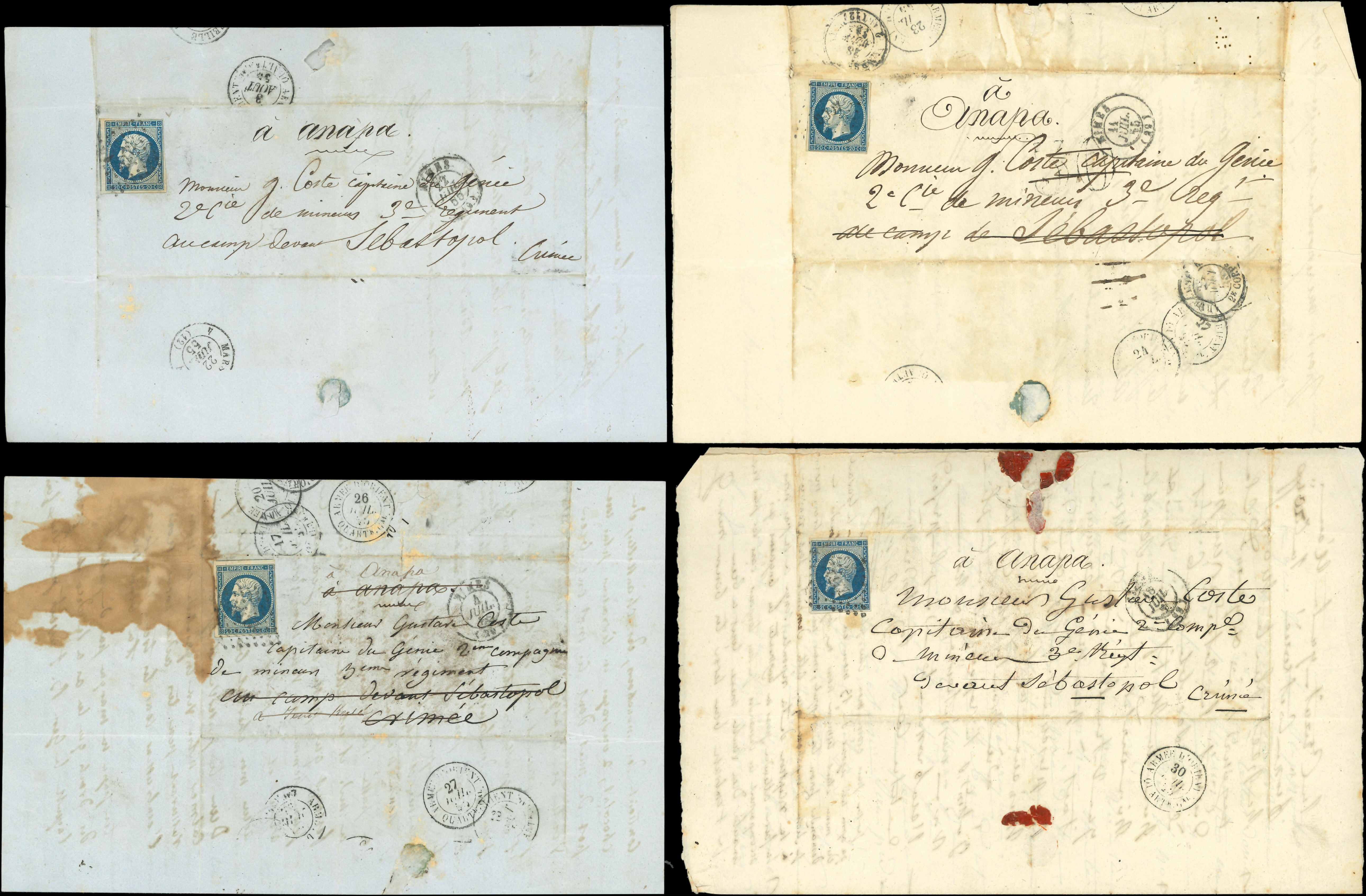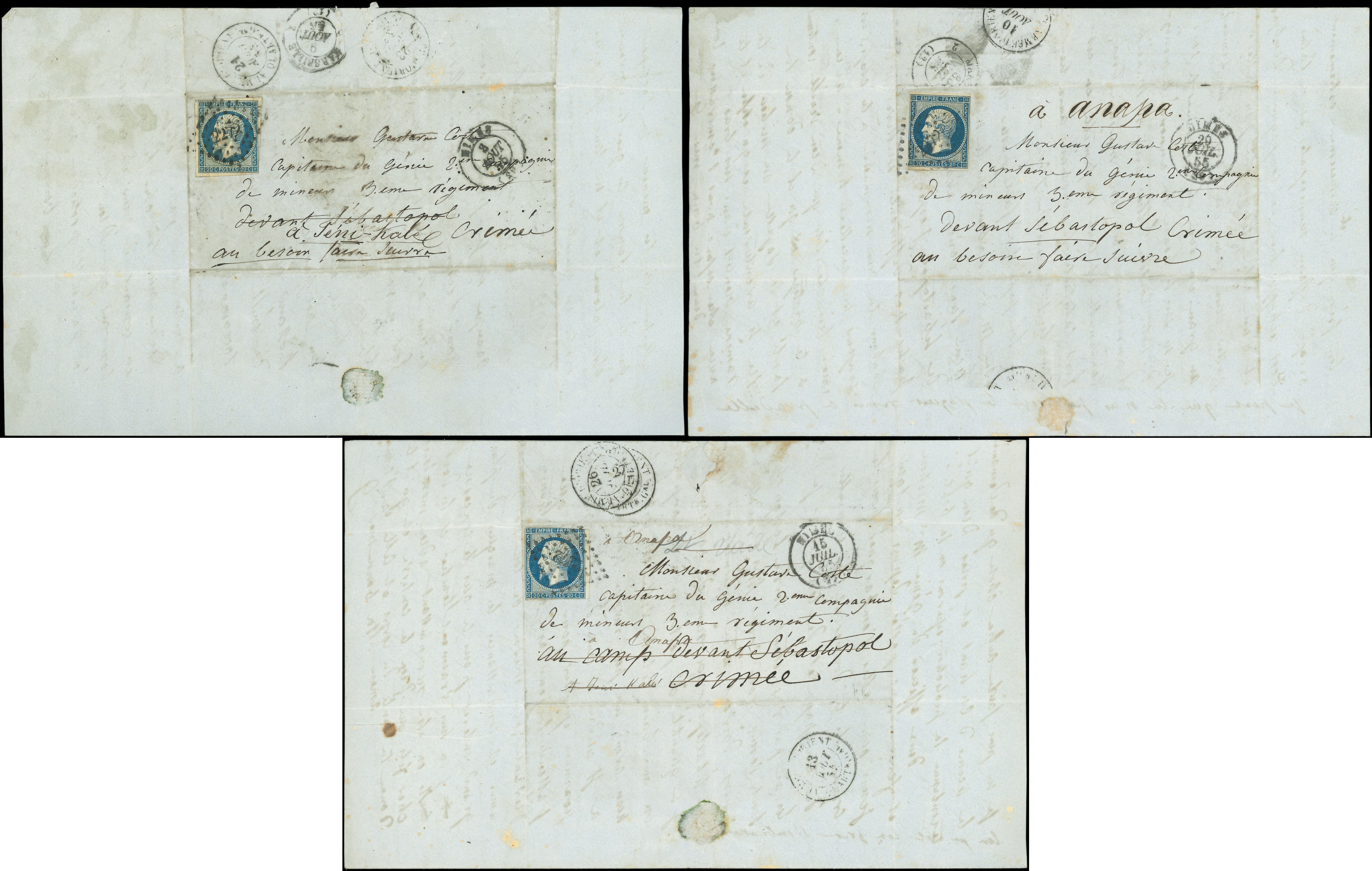 I, obl. PC sur 7 Lettres à ANAPA à un capitaine du Génie, guerre de Crimée, TB (Image)