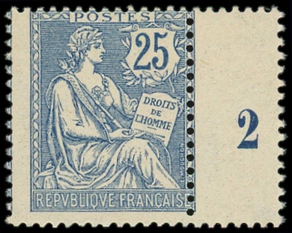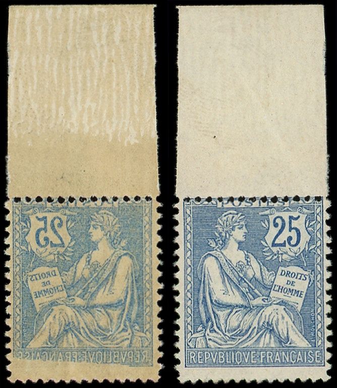 Retouché, 25c. bleu, piquage DECALE, bandelette Mill.2, TB (Image)