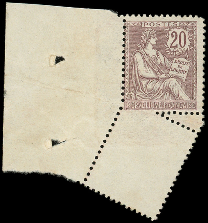 Retouché, 20c. brun-lilas, PIQUAGE OBLIQUE en cdf, TB (Image)