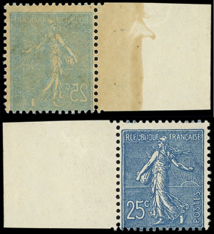Lignée, 25c. bleu, bdf, impression RECTO-VERSO, TTB (Image)