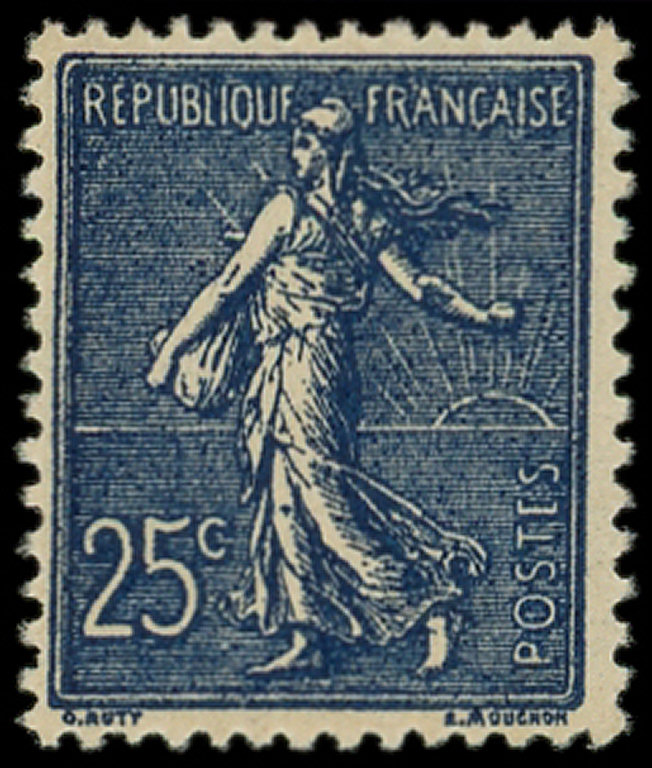 Lignée, 25c. bleu-NOIR, bon centrage, frais, TTB (Image)