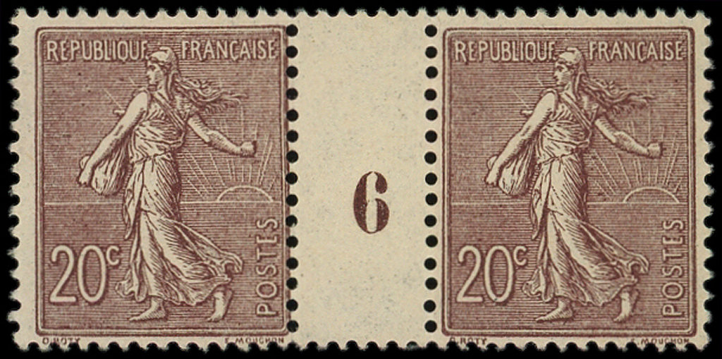 Lignée, 20c. brun-lilas foncé, PAIRE Mill.6, TB (Image)