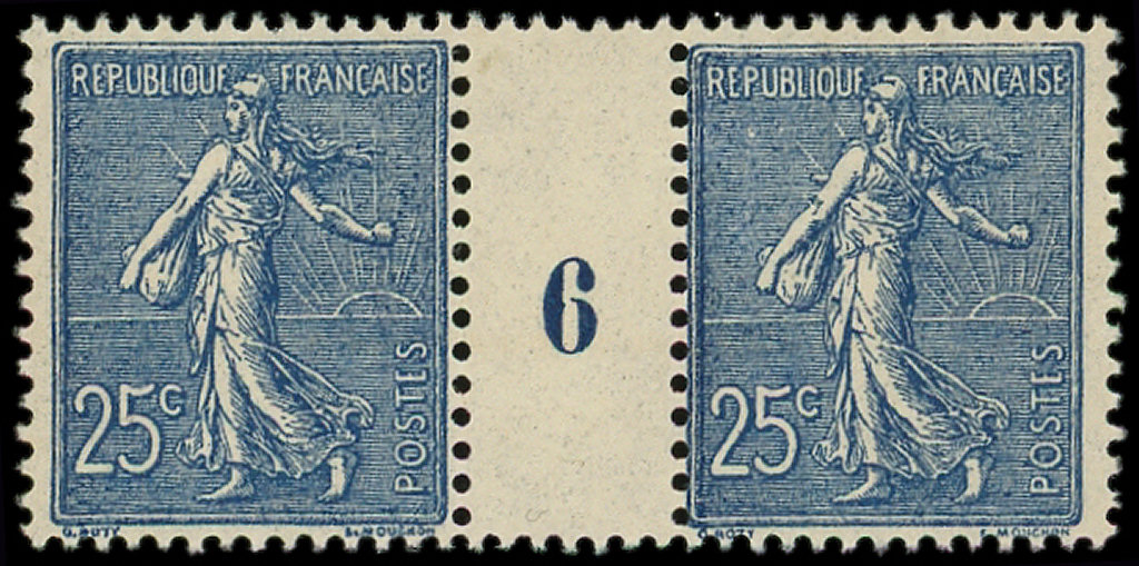 Lignée, 25c. bleu, nuance foncée, PAIRE Mill.6, TB (Image)