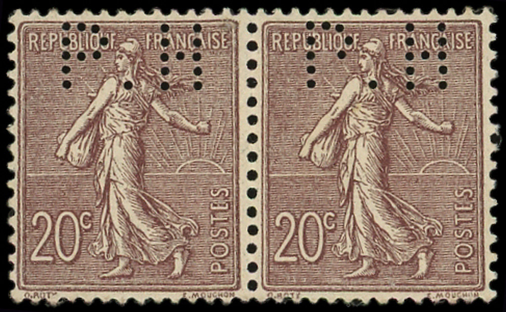 Lignée, 20c. brun-lilas, perforé P.H. en PAIRE, TB (Image)