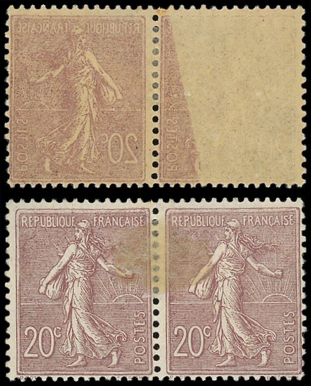 Lignée, 20c. brun lilas,PAIRE impression RECTO VERSO, partielle s. 1 ex., TB (Image)
