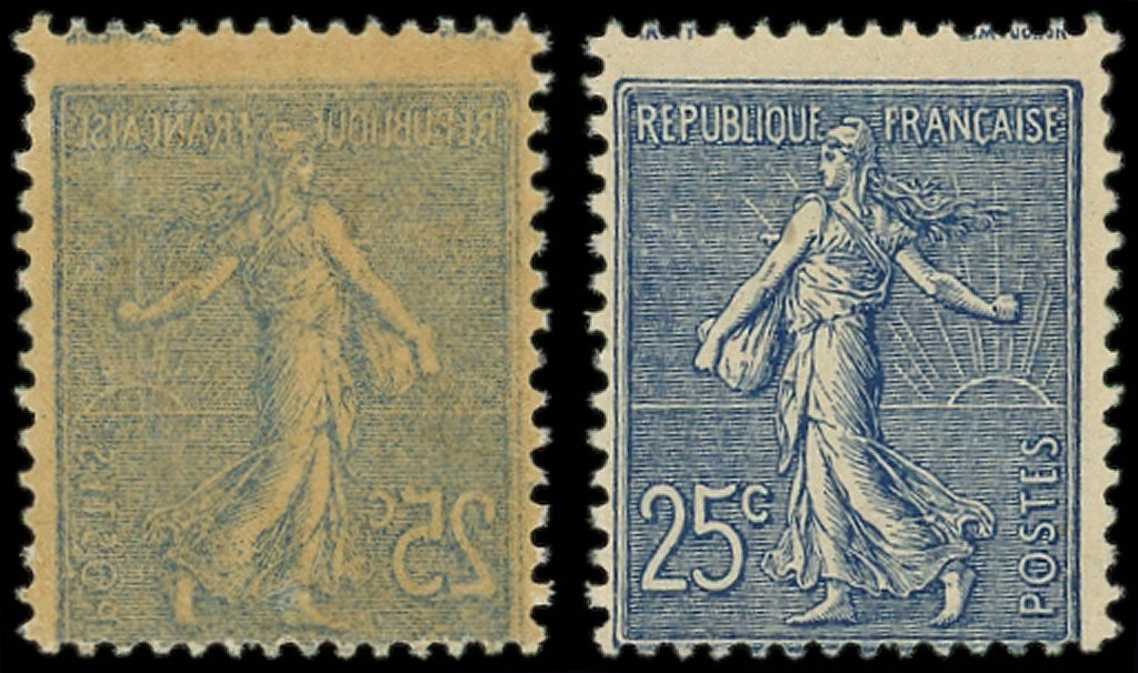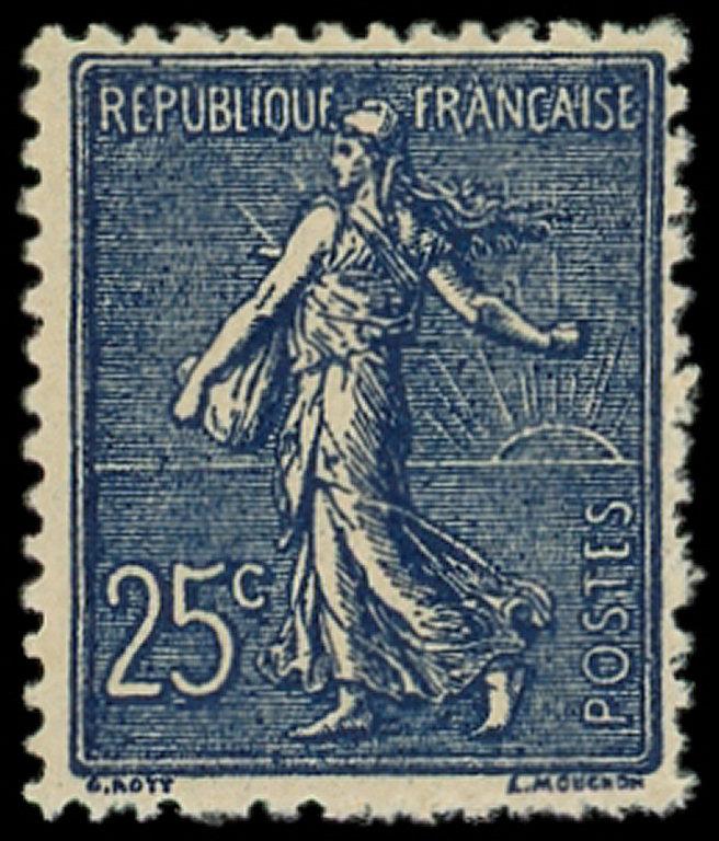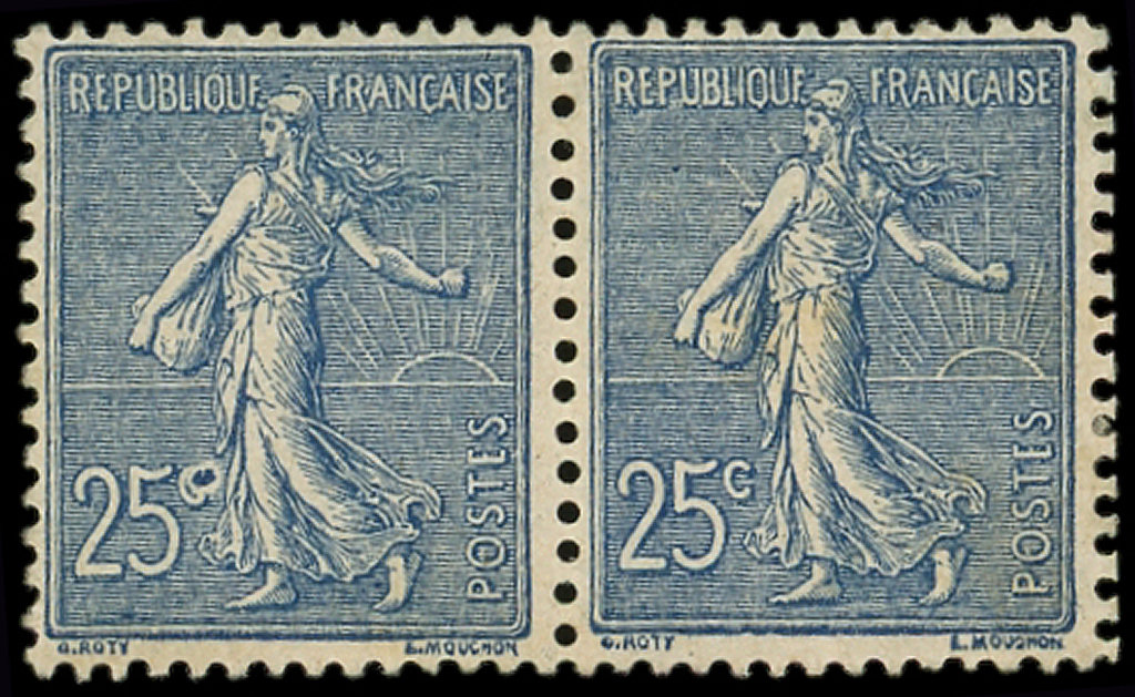 Lignée, 25c. bleu, DOUBLE PIQUAGE, TB, cote Maury (Image)
