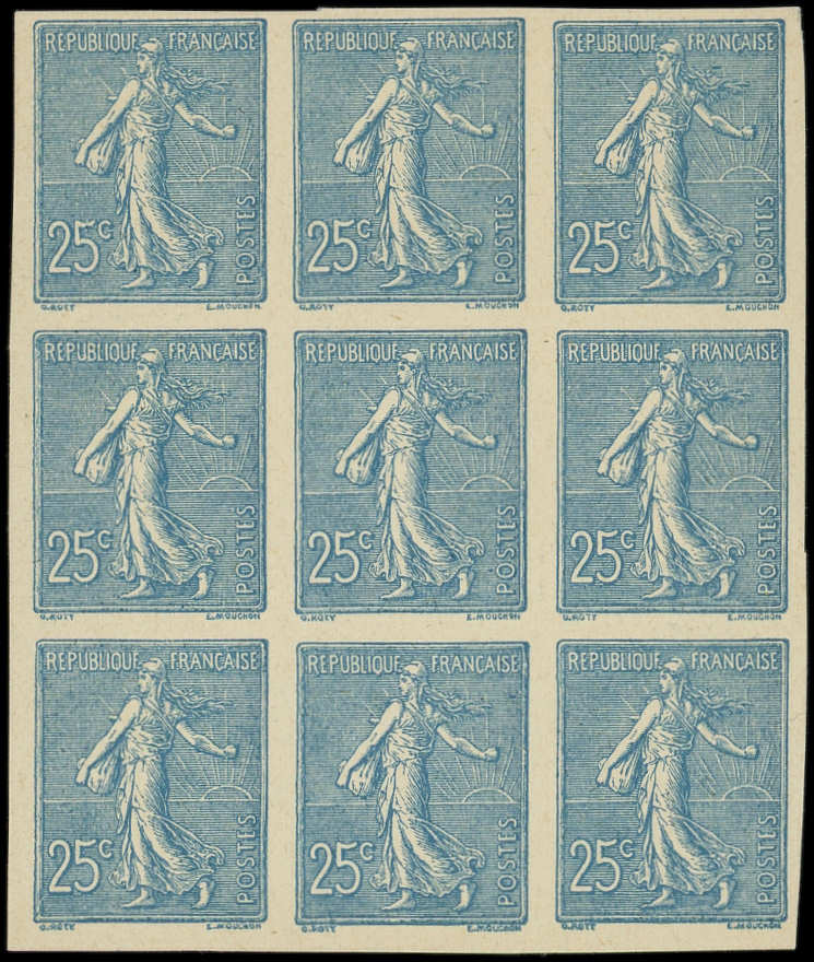 Lignée, 25c. bleu, BLOC de 9 NON DENTELE, TB. Br (Image)