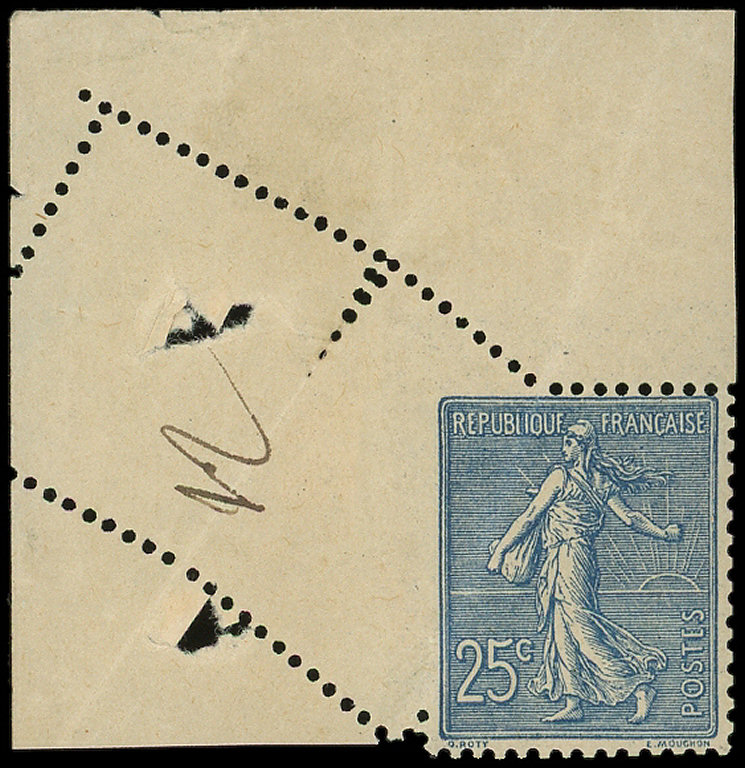 Lignée, 25c. bleu, cdf, PIQUAGE OBLIQUE, TB (Image)