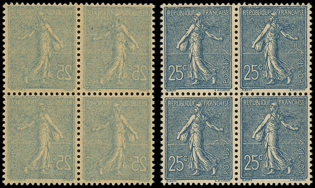 Lignée, 25c. bleu, BLOC de 4, impression RECTO-VERSO, TB (Image)