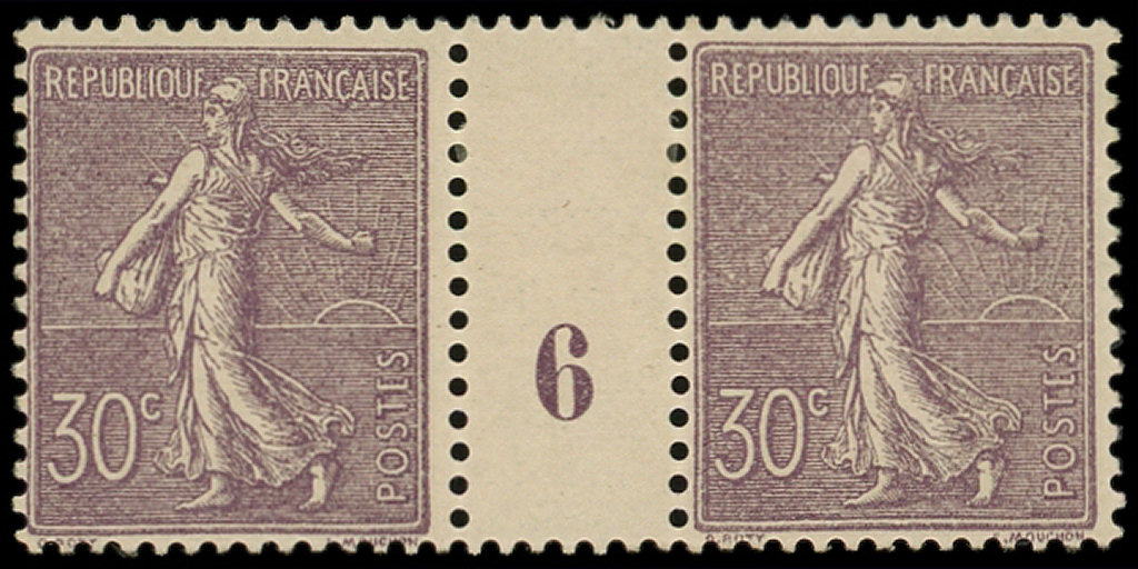 Lignée, 30c. lilas, nuance foncée, PAIRE Mill.6, intervalle *, TB (Image)