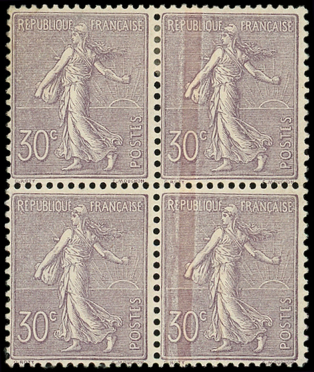 Lignée, 30c. lilas, BLOC de 4, 2 ex. impr. sur RACCORD (vertical), PAIRE sup. *, TB, cote Maury (Image)