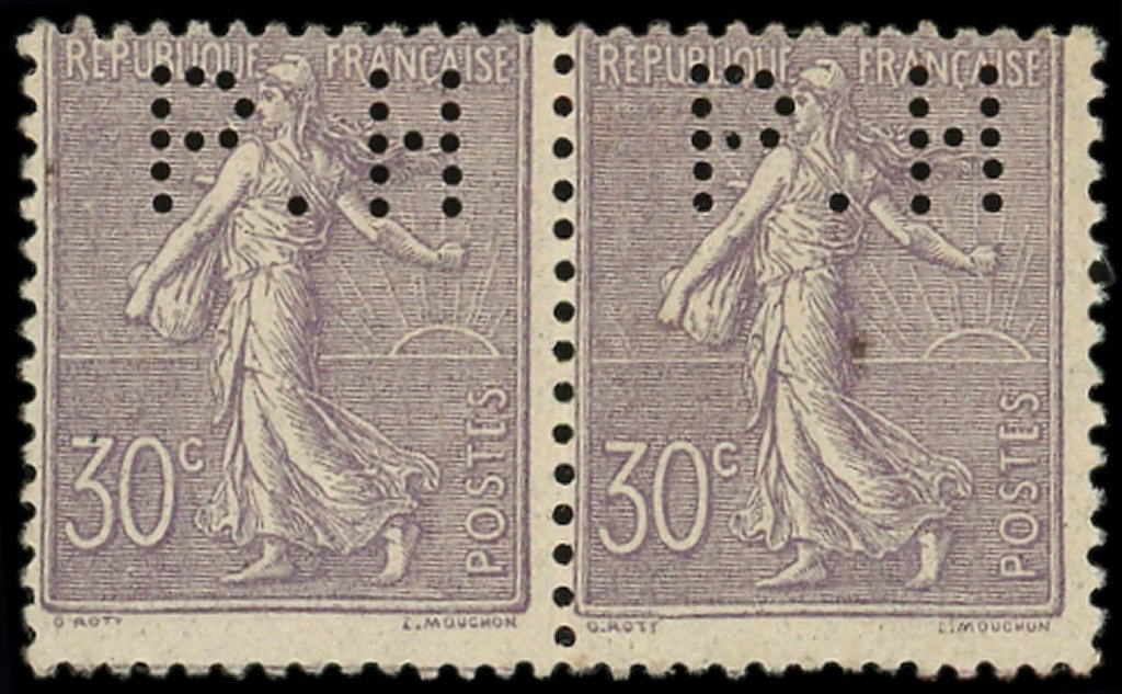 Lignée, 30c. lilas, perforé P.H., PAIRE, un ex. *, TB (Image)