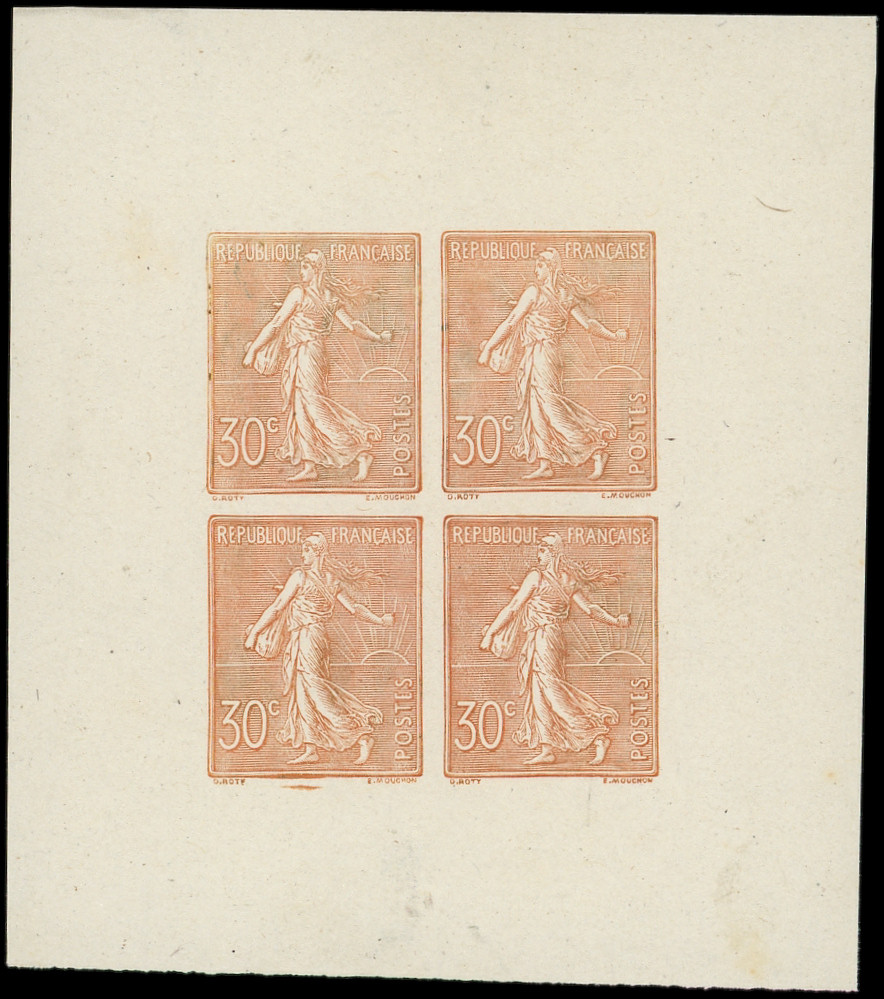 Lignée, 30c., BLOC de 4, Epreuve en brun-rouge sur chine, TB (Image)