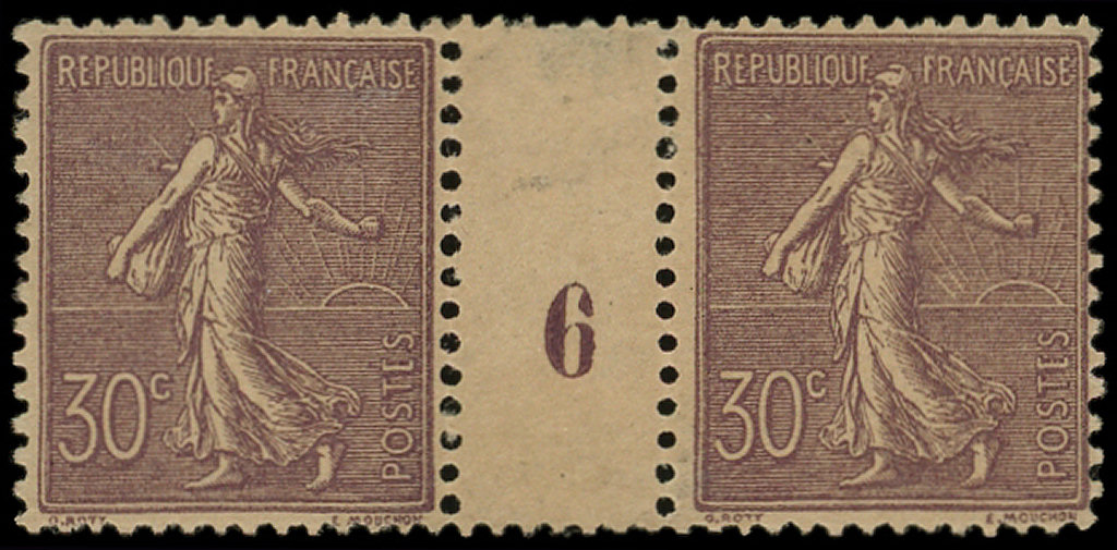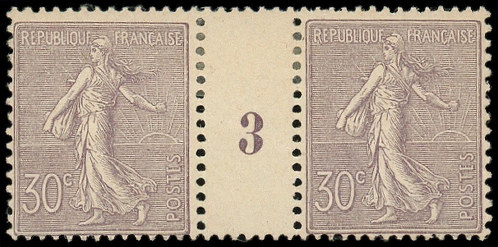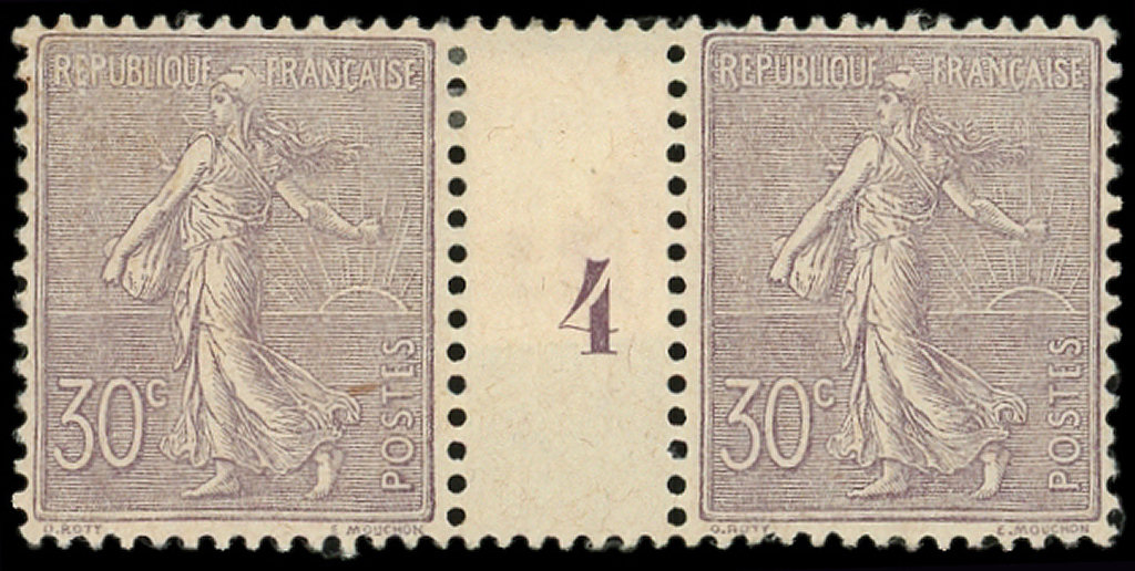 Lignée, 30c. lilas, PAIRE Mill.4, clair sur intervalle, timbres TB (Image)