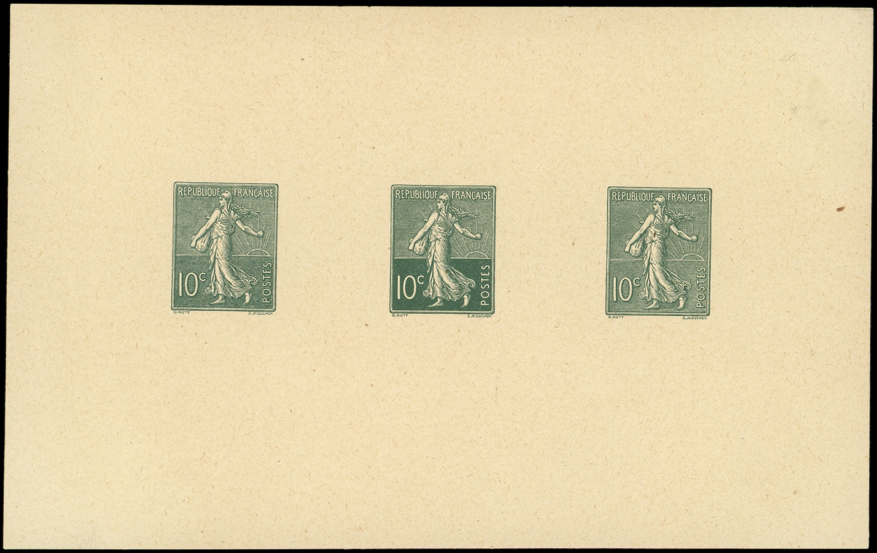 Epreuve collective en vert foncé de 3 poinçons différents du 10c., TB (Image)