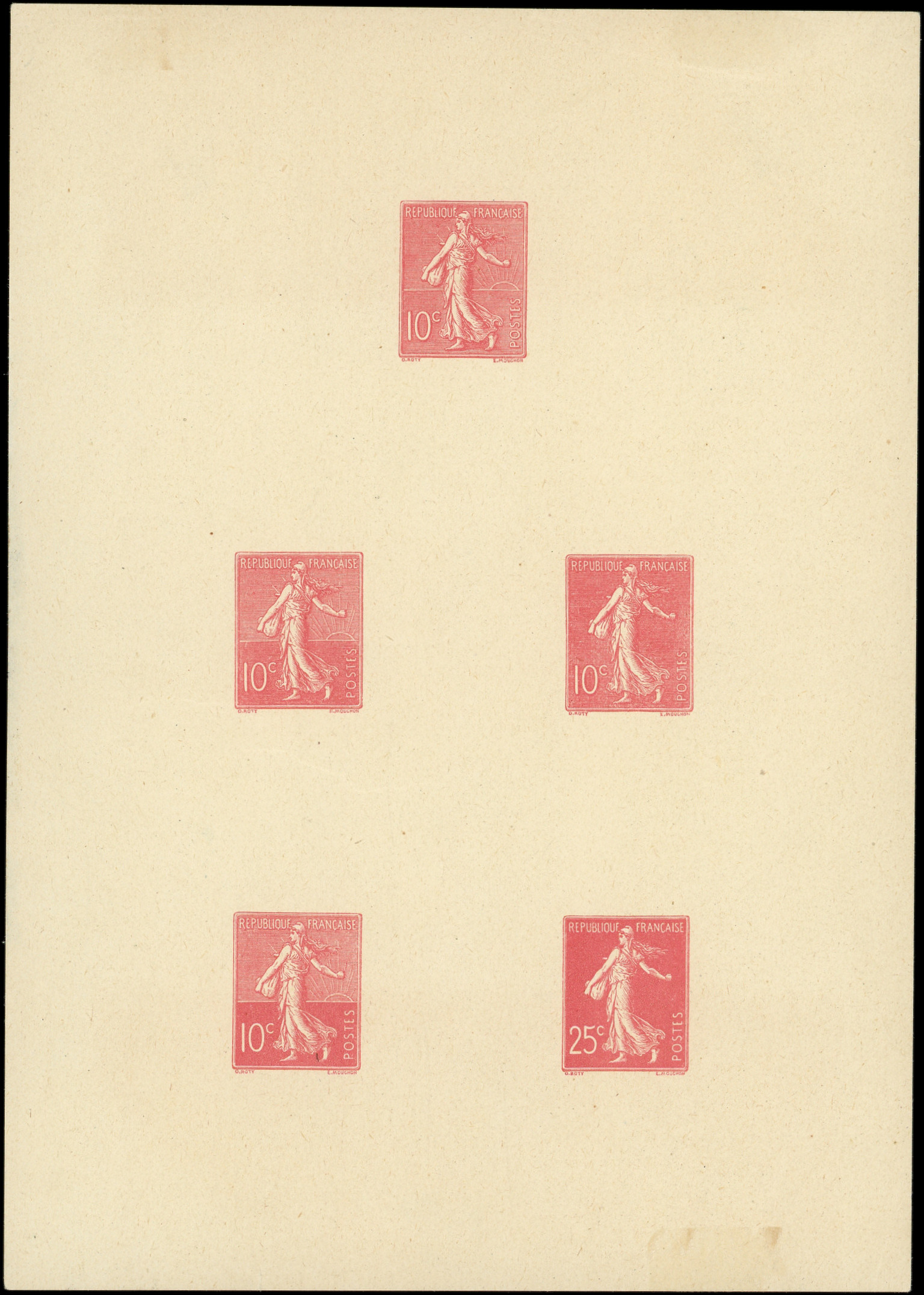 Epreuve collective en rose de 5 poinçons différents, 10c. (4) et 25c. (1), TB (Image)