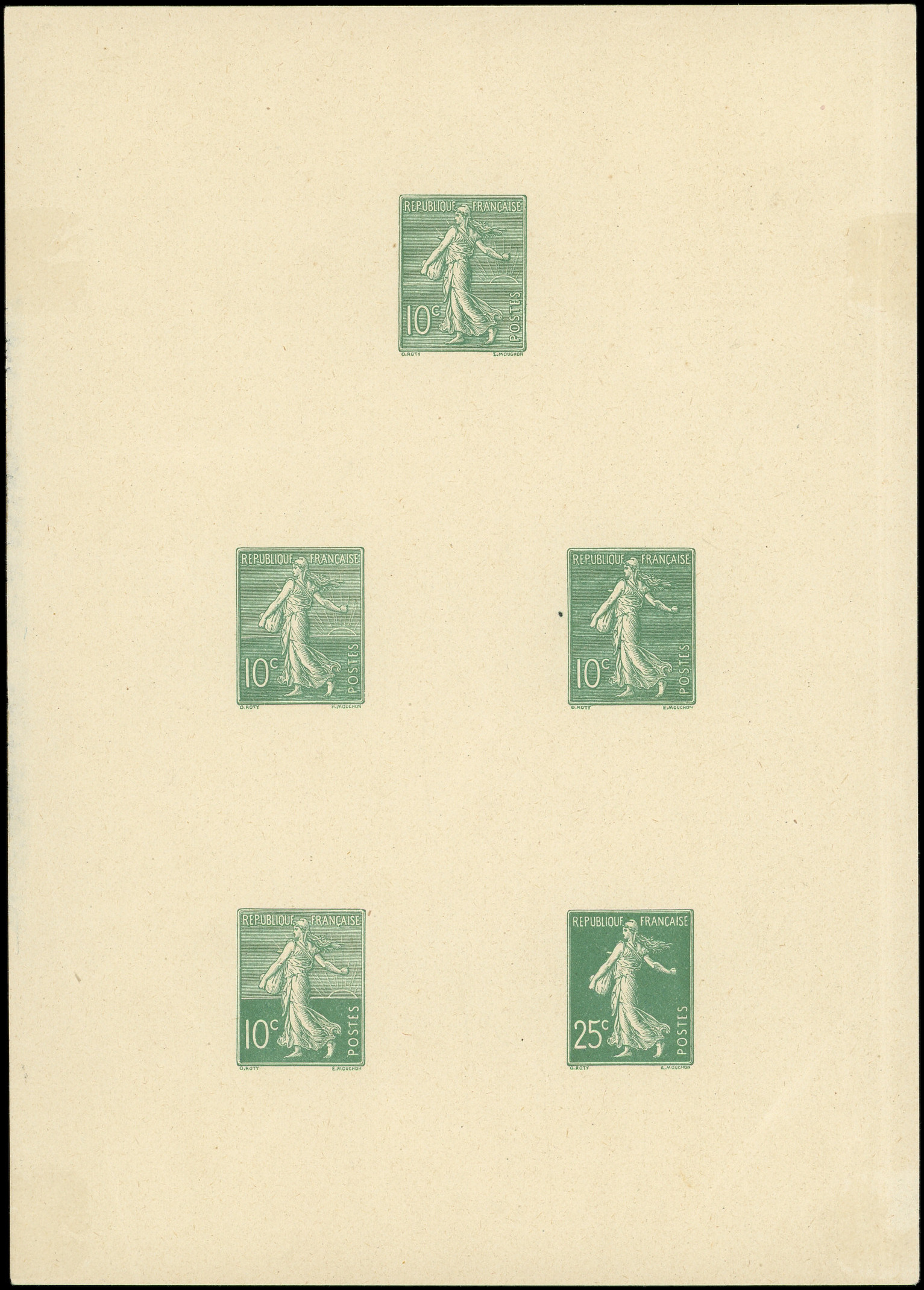 Epreuve collective en vert de 5 poinçons différents 10c. (4) et 25c. (1), TB (Image)