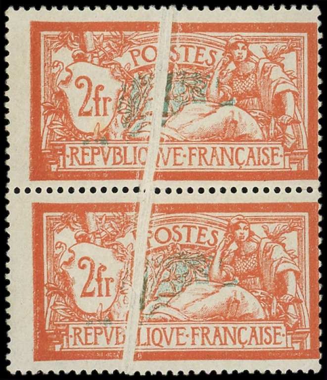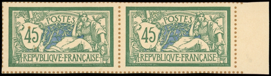 45c. vert et bleu, NON DENTELE sur Bristol, dentelure FIGUREE, PAIRE bdf, TB, cote Cérès (Image)