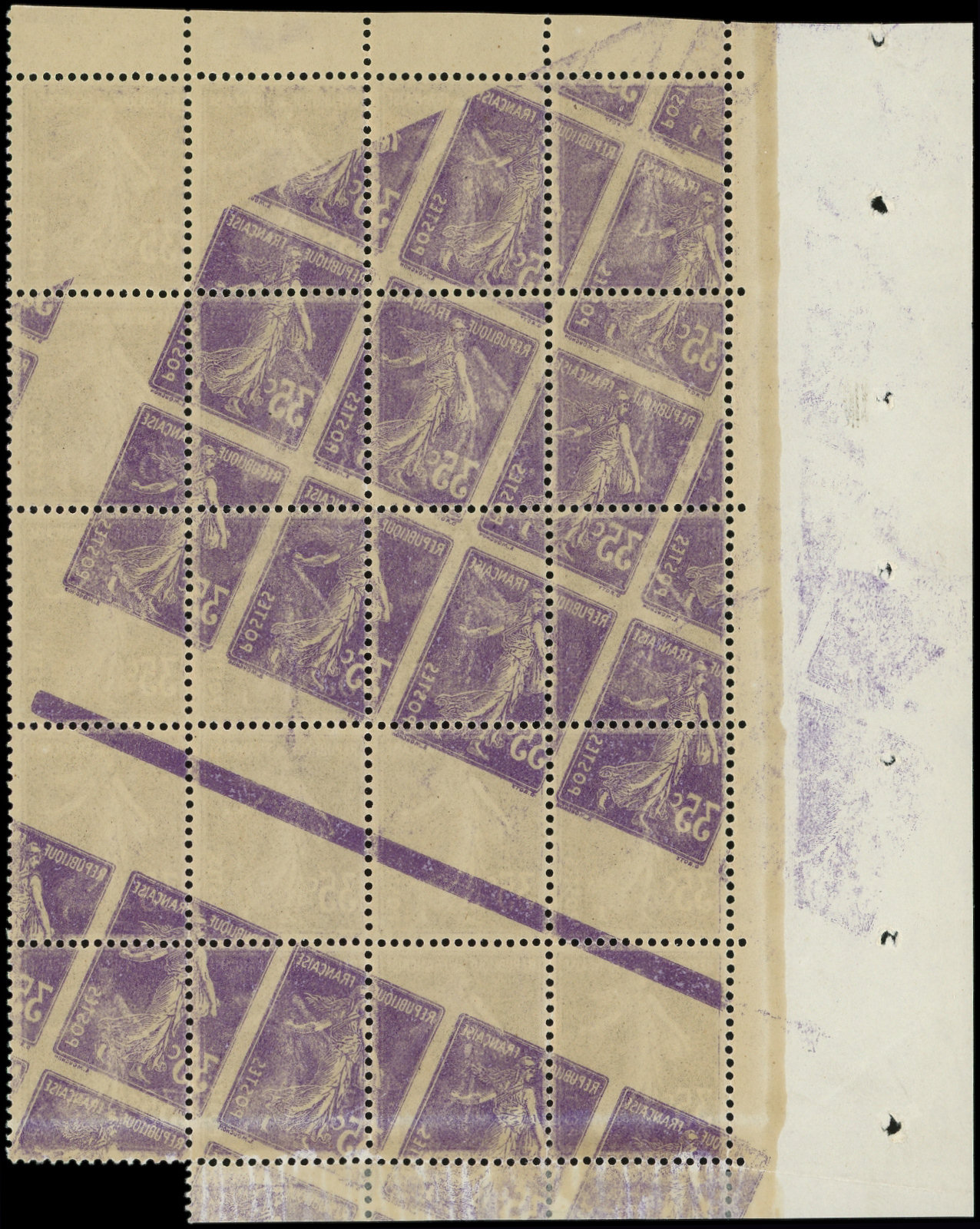 Camée, 35c. violet, BLOC de 40 avec exceptionnelle variété RECTO-VERSO en DIAGONALE, Superbe (Image) (Image2)