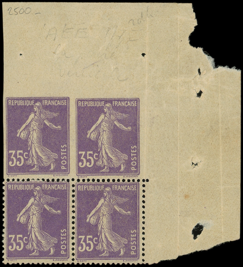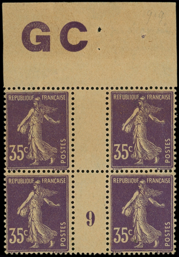 Camée, 35c. violet, BLOC de 4 Mill.9, manchette GC, papier chamois, TB (Image)