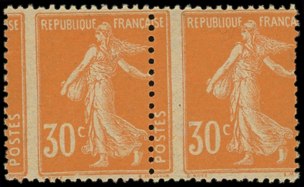 Camée, 30c. orange, paire PIQUAGE A CHEVAL, papier GC, TB, N° Maury (Image)