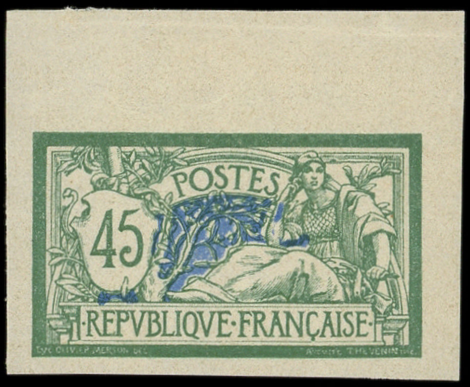 45c. vert et bleu, NON DENTELE, bdf, TTB. S (Image)