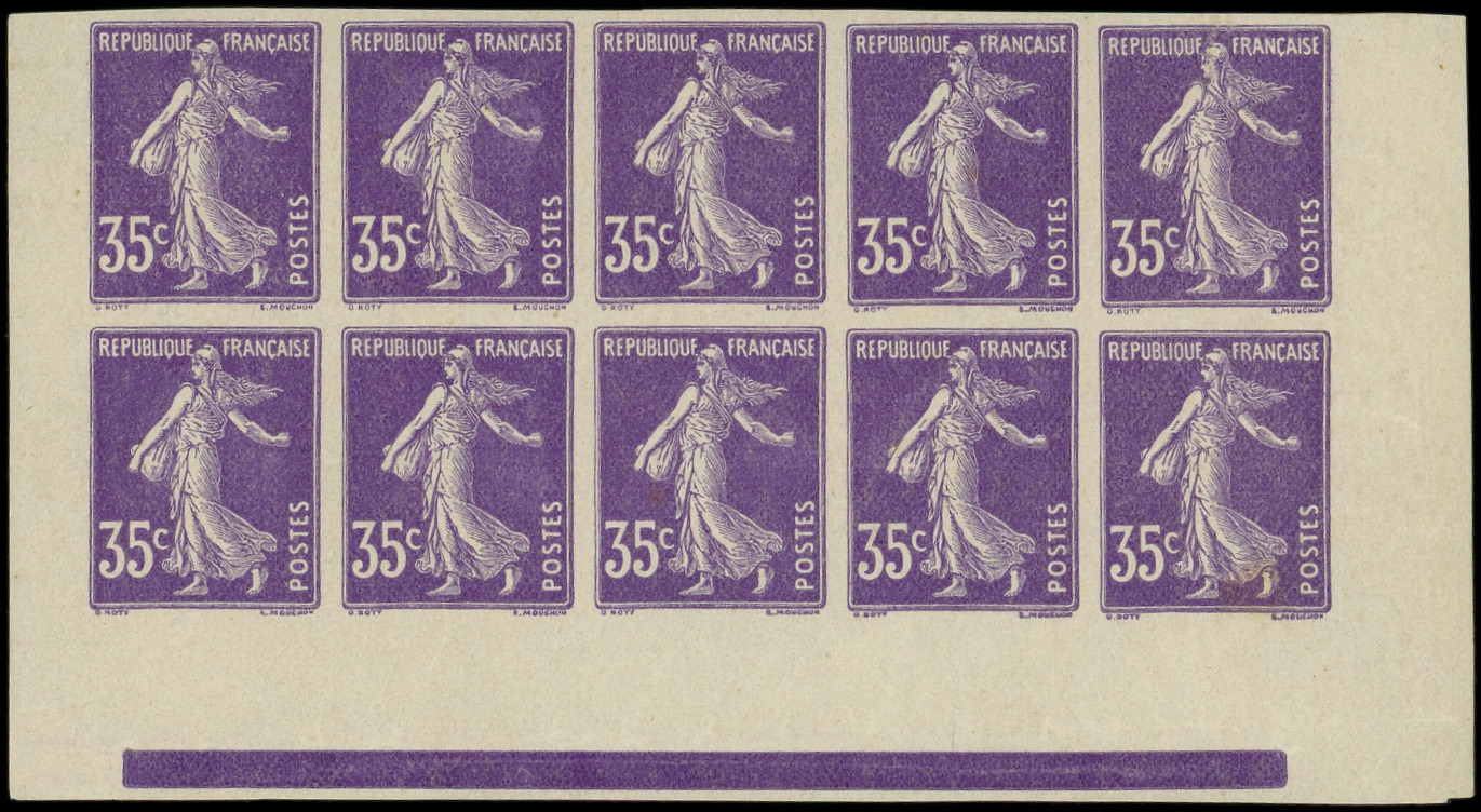 Camée, 35c. violet, BLOC de 10 NON DENTELE avec bords, 3 ex. *, TB (Image)