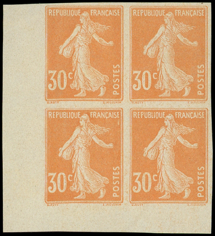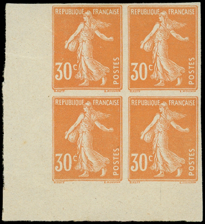 Camée, 30c. orange, BLOC de 4 NON DENTELE cdf, gno, TB (Image)