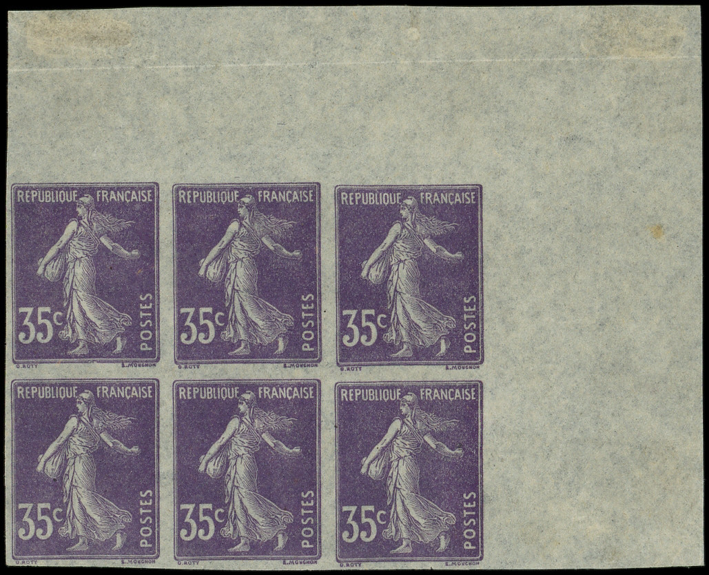 Camée, 35c. violet, BLOC de 6 bdf, DOUBLE PIQUAGE sur la paire du milieu, Spectaculaire et TB (Image)