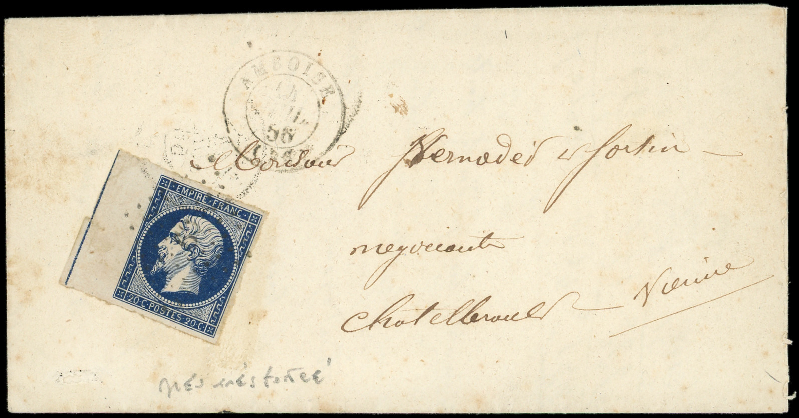TRES foncé bdf avec FILET d'ENCADREMENT, obl. PC 60 s. LAC, càd T15 AMBOISE 14/7/56, RR ainsi, TB (Image)