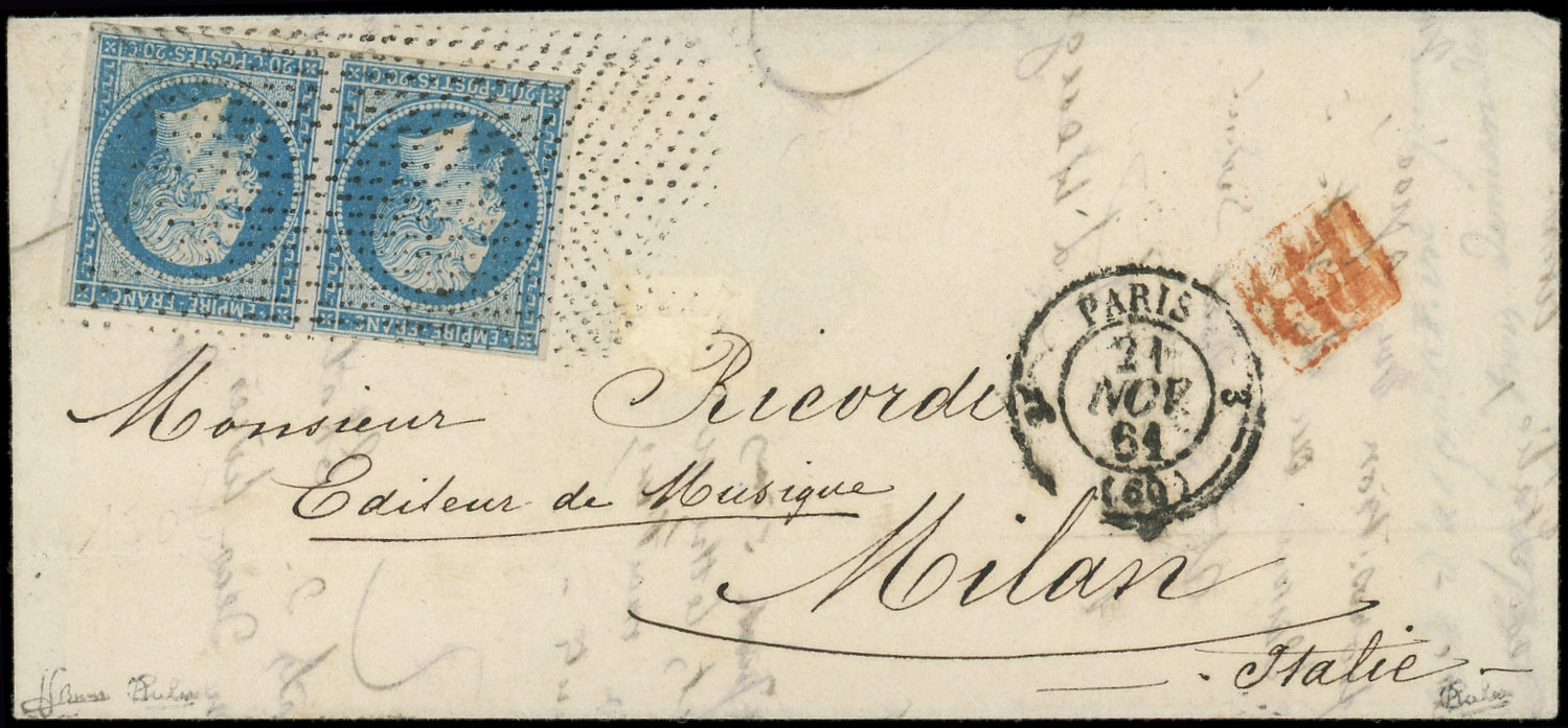 II, PAIRE obl. Roulette de POINTILLES s. LSC, càd 3e PARIS 3 21/11/61, arr. MILANO, TTB. J et C (Image) (Image2)