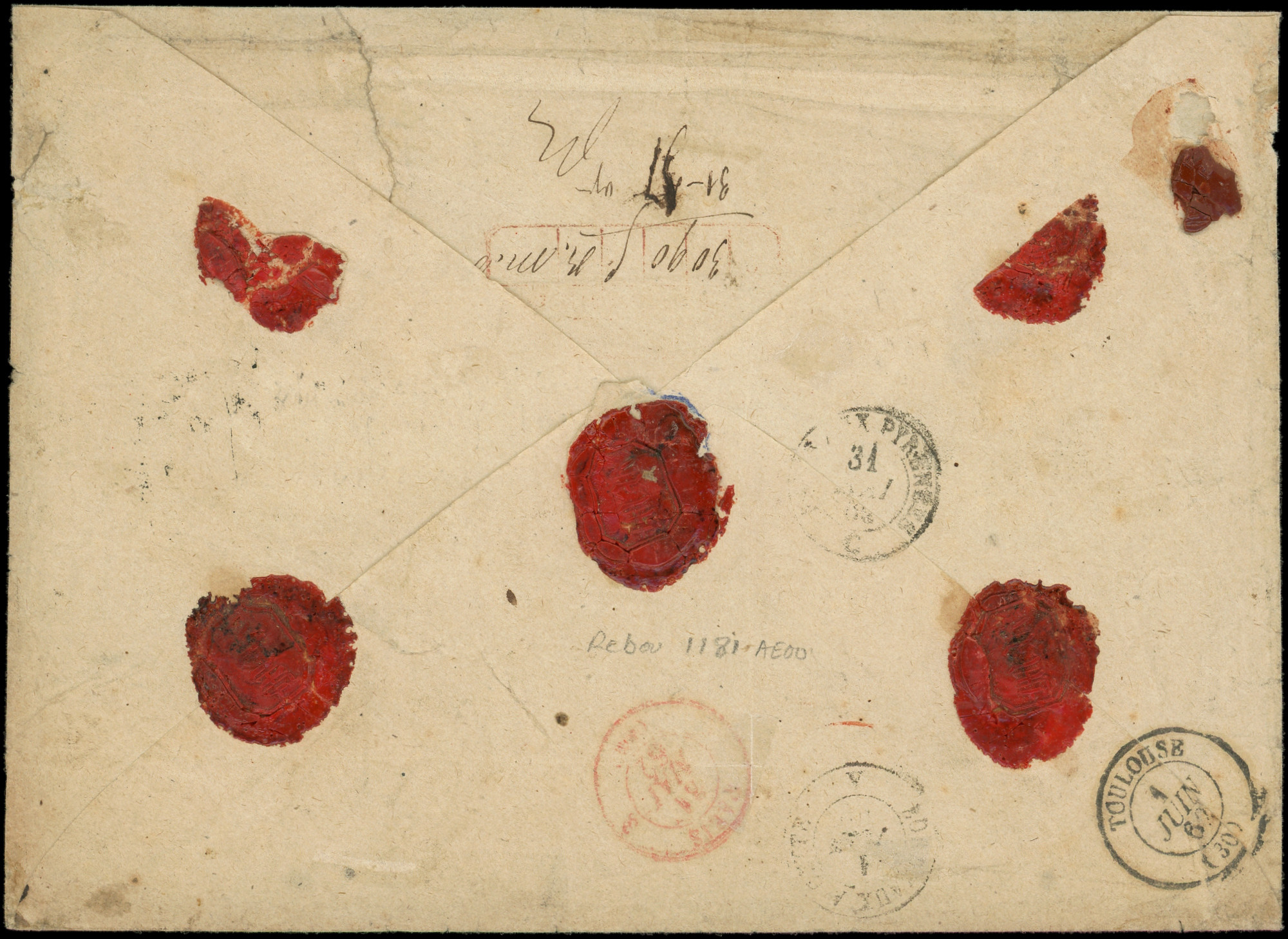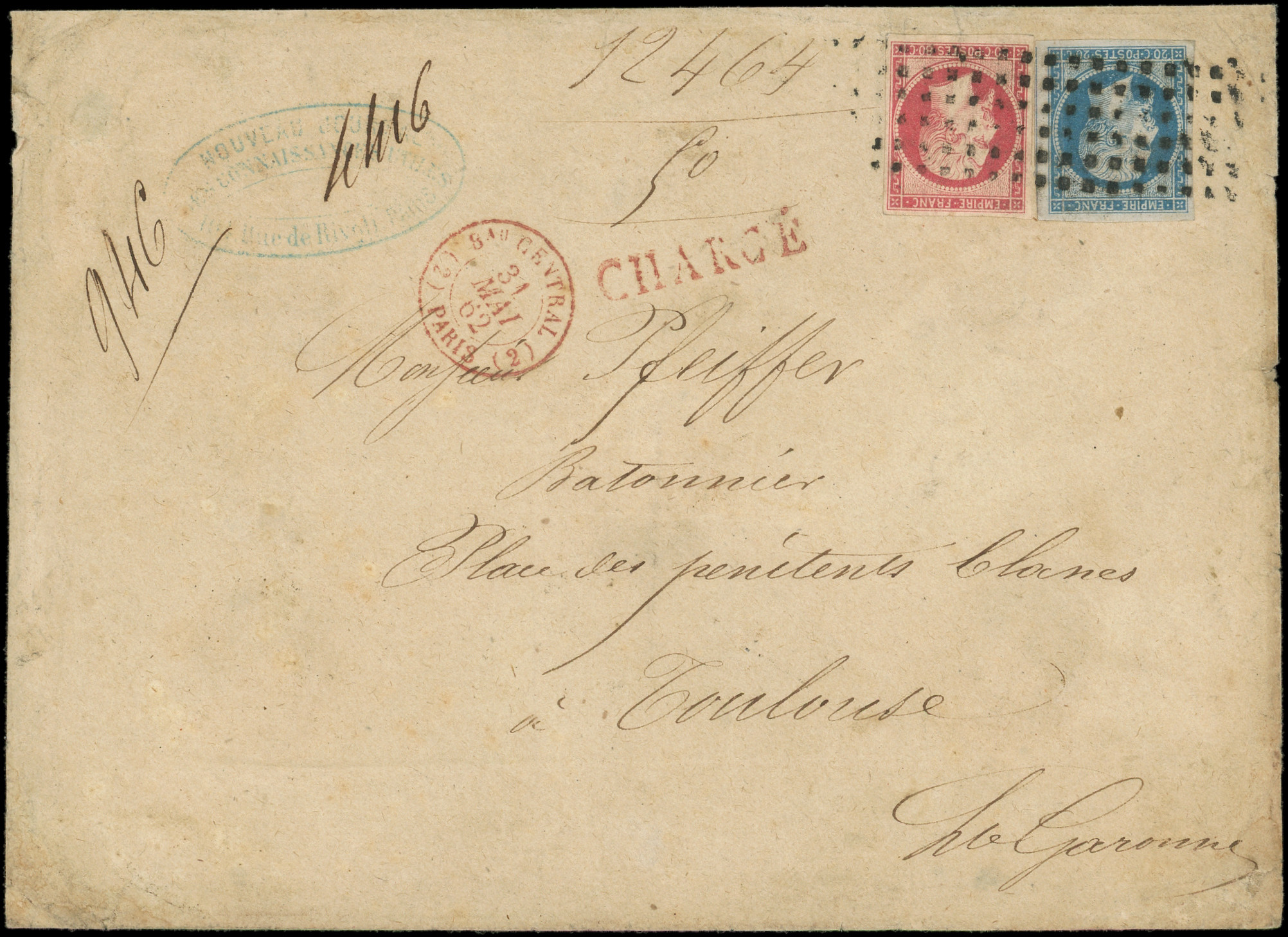 et 80c. obl. GROS POINTS s. Env. CHARGE, càd rouge (2) Bau CENTRAL (2) 31/5/62, arr. TOULOUSE 1/6, combinaison Rare, TB, certif. JF Brun (Image) (Image2)