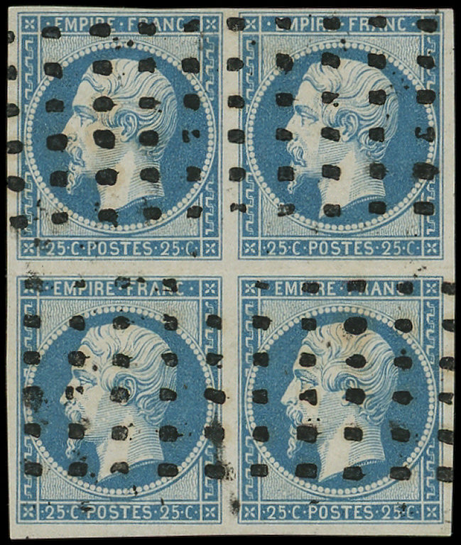 BLOC de 4 obl. GROS POINTS, pli horizontal en marge centrale, 1 ex. trou vermiculaire, sinon TB. J (Image)