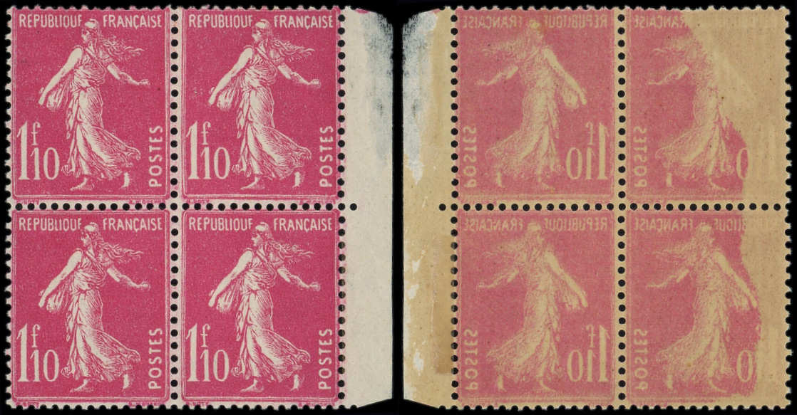 Camée, 1f.10 rose, BLOC de 4 impression RECTO VERSO partielle s. 2 t., non répertorié, TTB (Image)