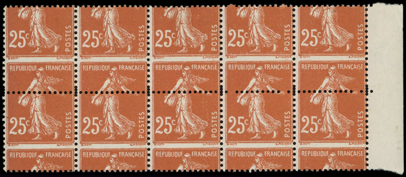 Camée, 25c. brun-jaune, PIQUAGE à CHEVAL, BLOC de 10 bdf, un ex. *, TB (Image)
