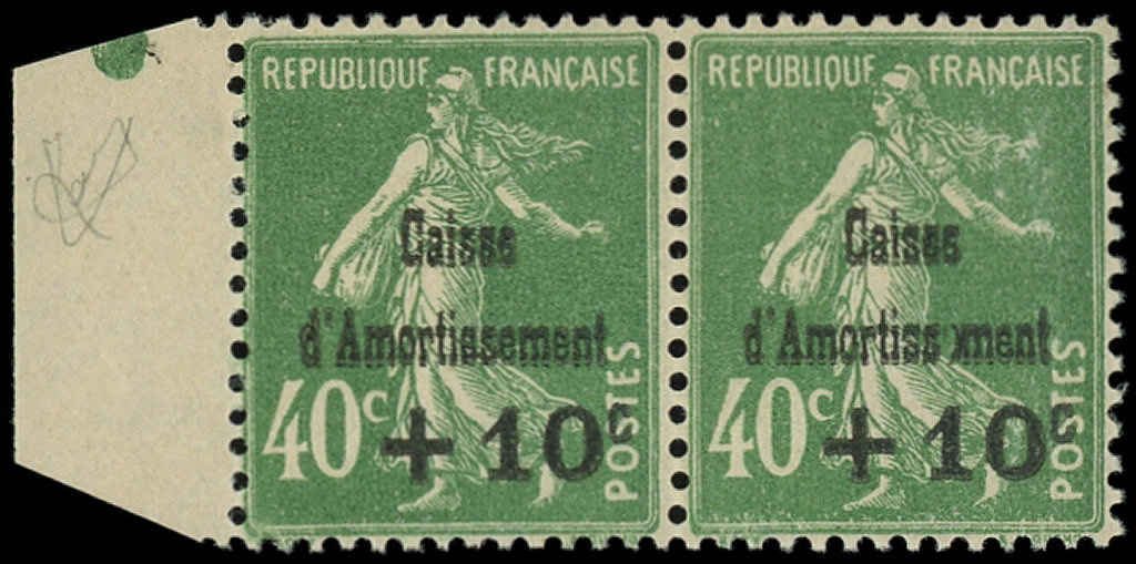 Amortissement, +10c. s. 40c. vert, SANS le 1er e d'Amortissement, tenant à normal bdf, TB (Image)