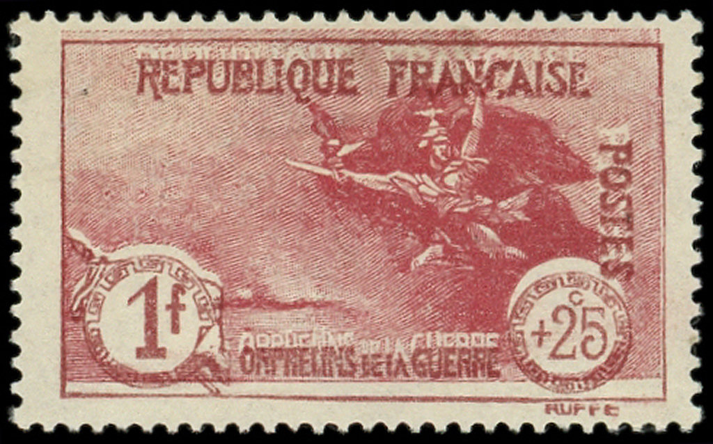 Orphelins, 1f. + 25c. carmin, CENTRE TRES DEPLACE, TB, cote et N° Maury (Image)