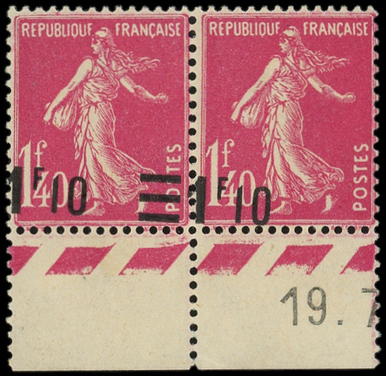 Camée, 1f.10 s. 1f.40 rose, VALEUR sur VALEUR SANS les barres, tenant à VALEUR sur VALEUR, bdf, TB (Image)